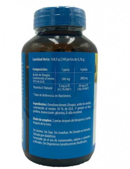 Aceite de Onagra (conteniendo al menos 10 % de GLA) 2000 mg, Vitamina E Natural 20 mg a-TE (166,7% VRN*).