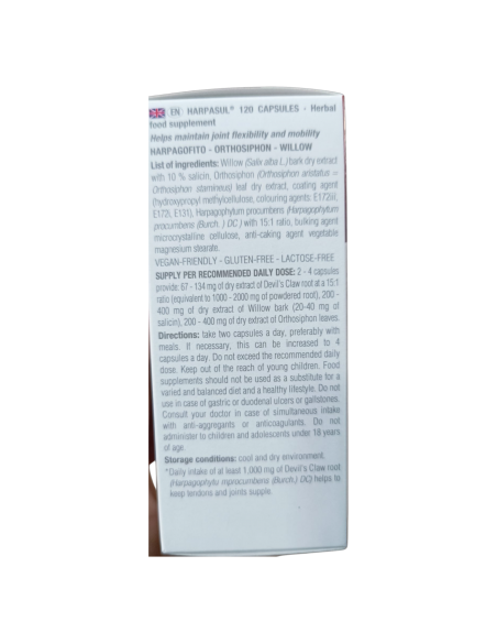 Suplemento a base de plantas con harpagofito para apoyar el mantenimiento de las articulaciones en condiciones normales.