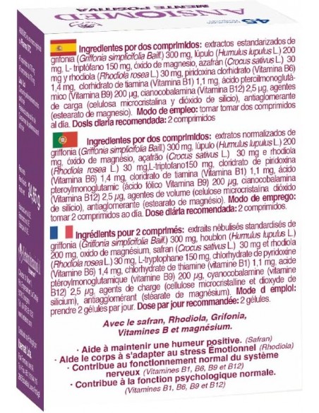 El azafrán contribuye a mantener un estado de ánimo positivo. Las vitaminas del grupo B apoyan el normal funcionamiento del sistema nervioso. La rhodiola ayuda al organismo a adaptarse al estrés emocional.