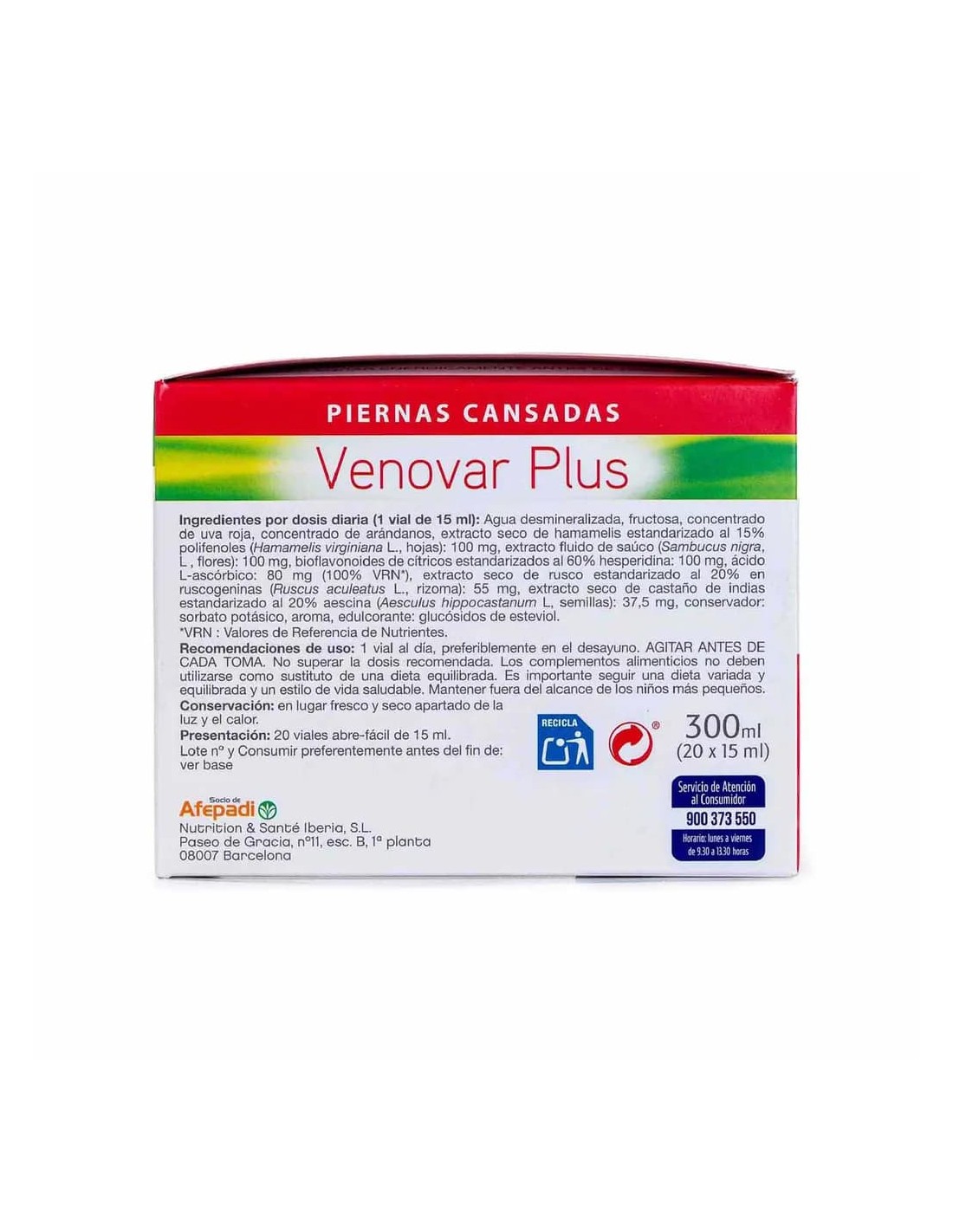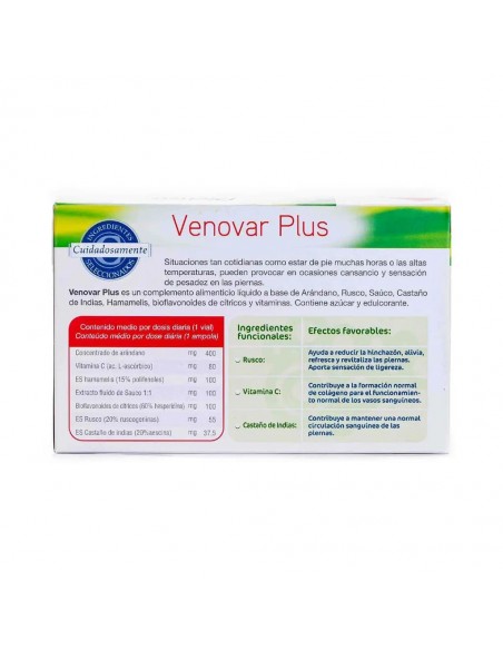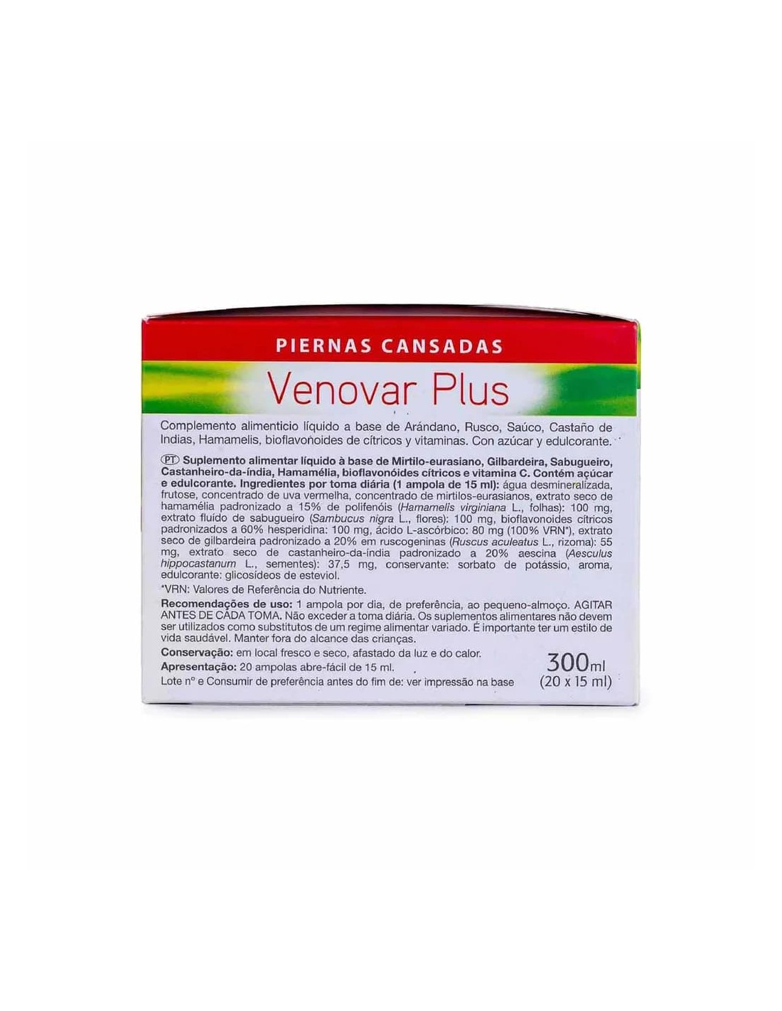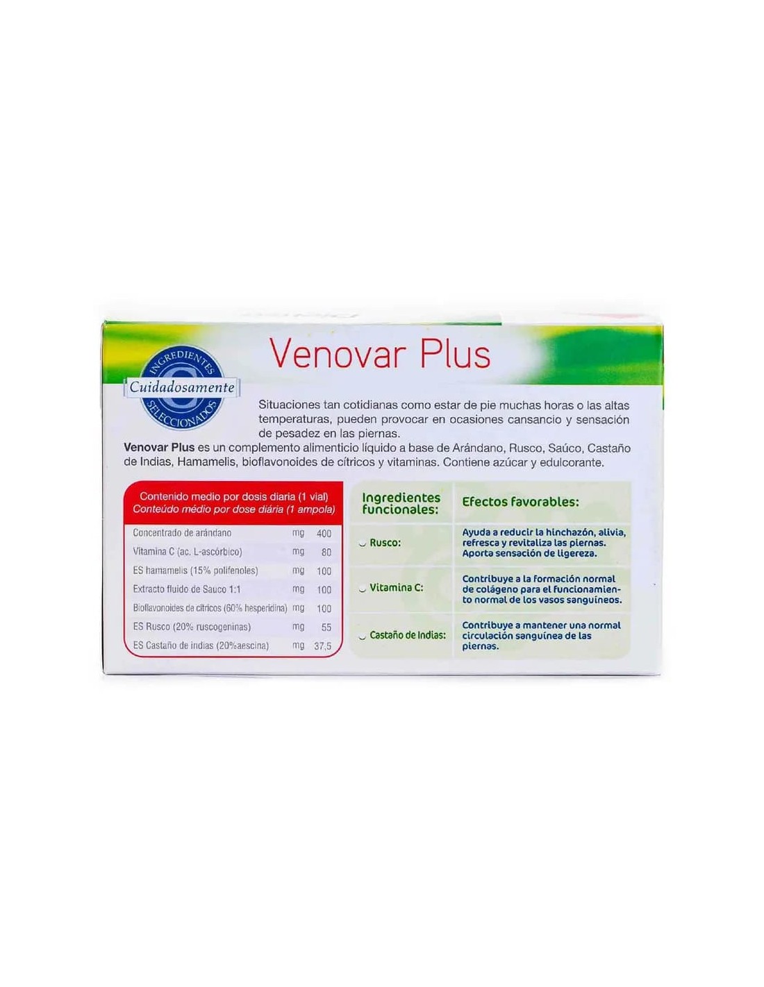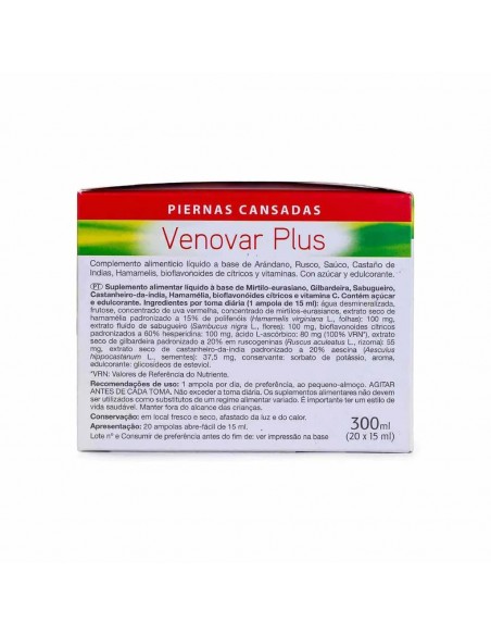 Vitaminas: Venovar Plus ampollas contiene vitaminas C y E, que son antioxidantes y ayudan a proteger las células del daño oxidativo.