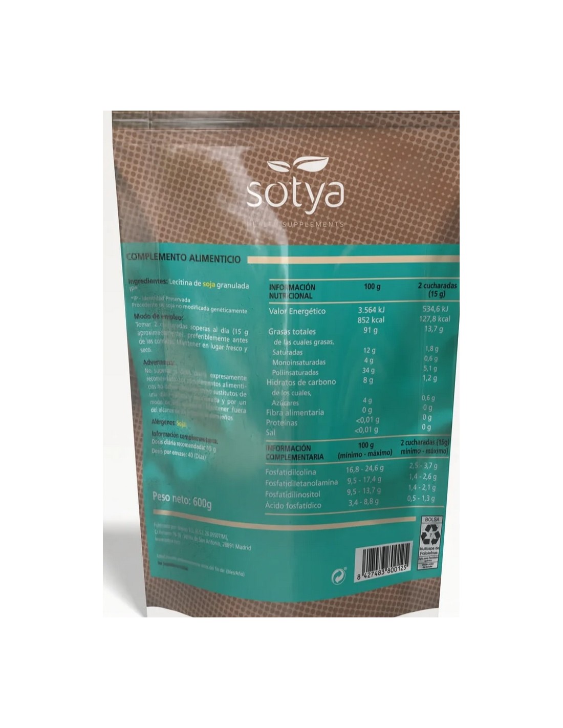 Lecitina de soja granulada IP (Identidad preservada). La sustitución de grasas saturadas por grasas insaturadas en la dieta contribuye a mantener niveles normales de grasa en la sangre. Los ácidos grasos Monoinsaturados o Poliinsaturados y el Ácido oleico son grasas insaturadas.
