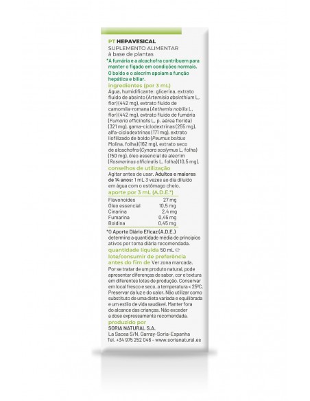Combinación de plantas con acción colerética (estimula la producción de bilis en el hígado), colagoga (estimula la eliminación de bilis de la vesícula biliar), regenerante de la célula hepática, digestiva, hipocolesterolizante, antiinflamatoria y dirética.