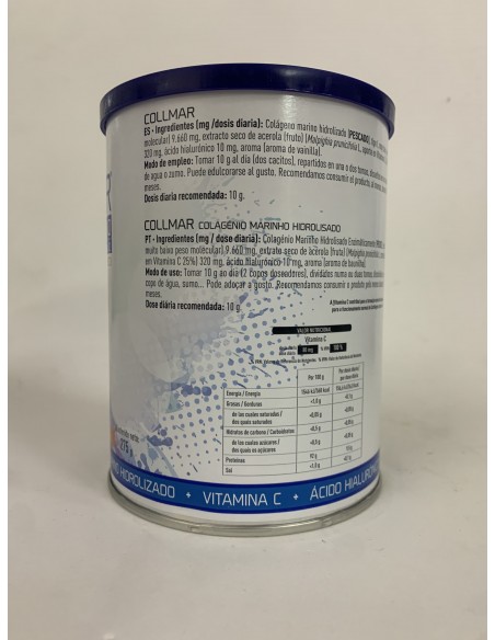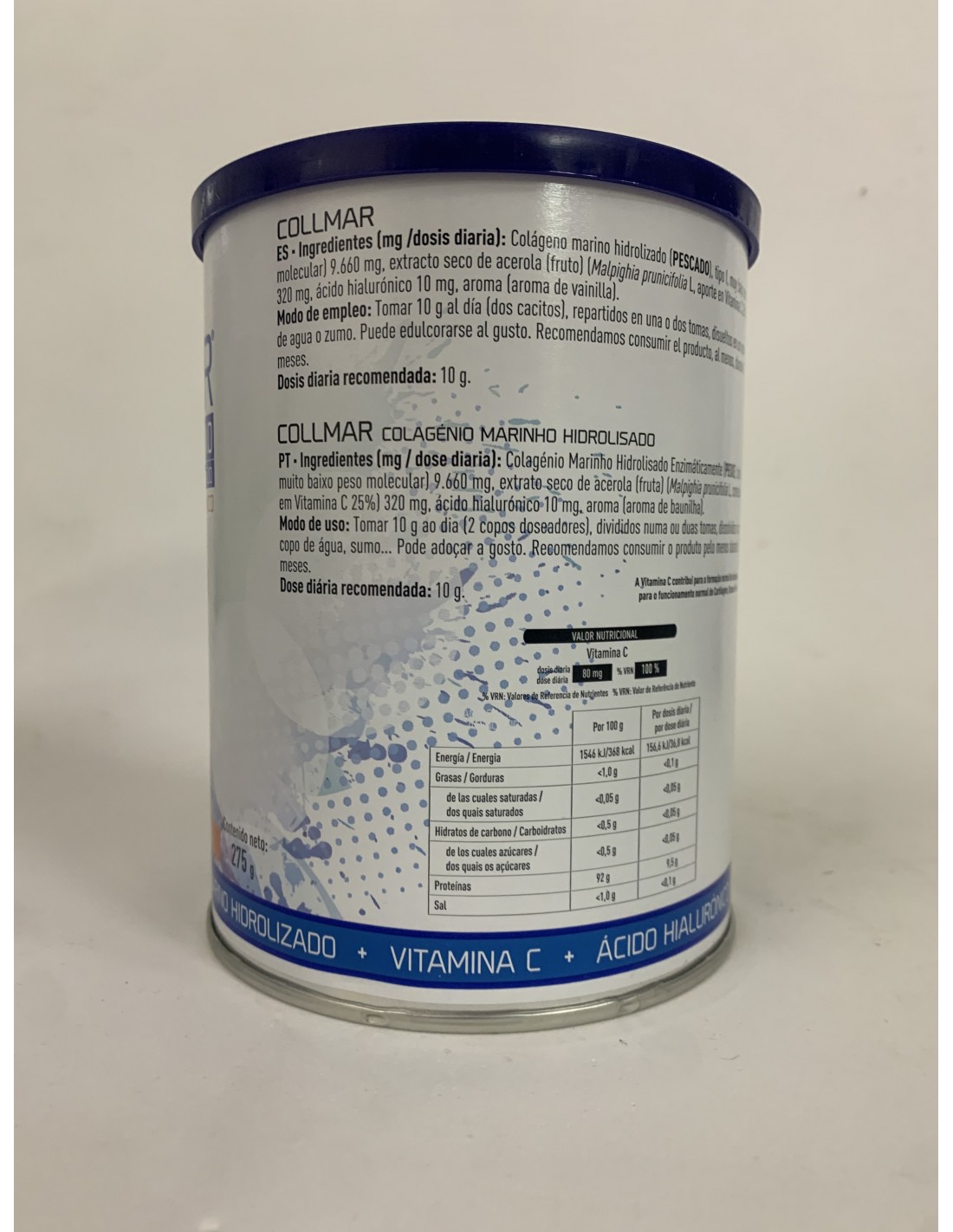 Collmar estáelaborado con auténtico Colágeno Marino Hidrolizado, procedente de peces, y sometido a un proceso de hidrólisis. Debido a su contenido en Vitamina C, Collmar Colágeno Marino Hidrolizado contribuye a la formación normal de colágeno para el funcionamiento normal de cartílagos, huesos y piel.
