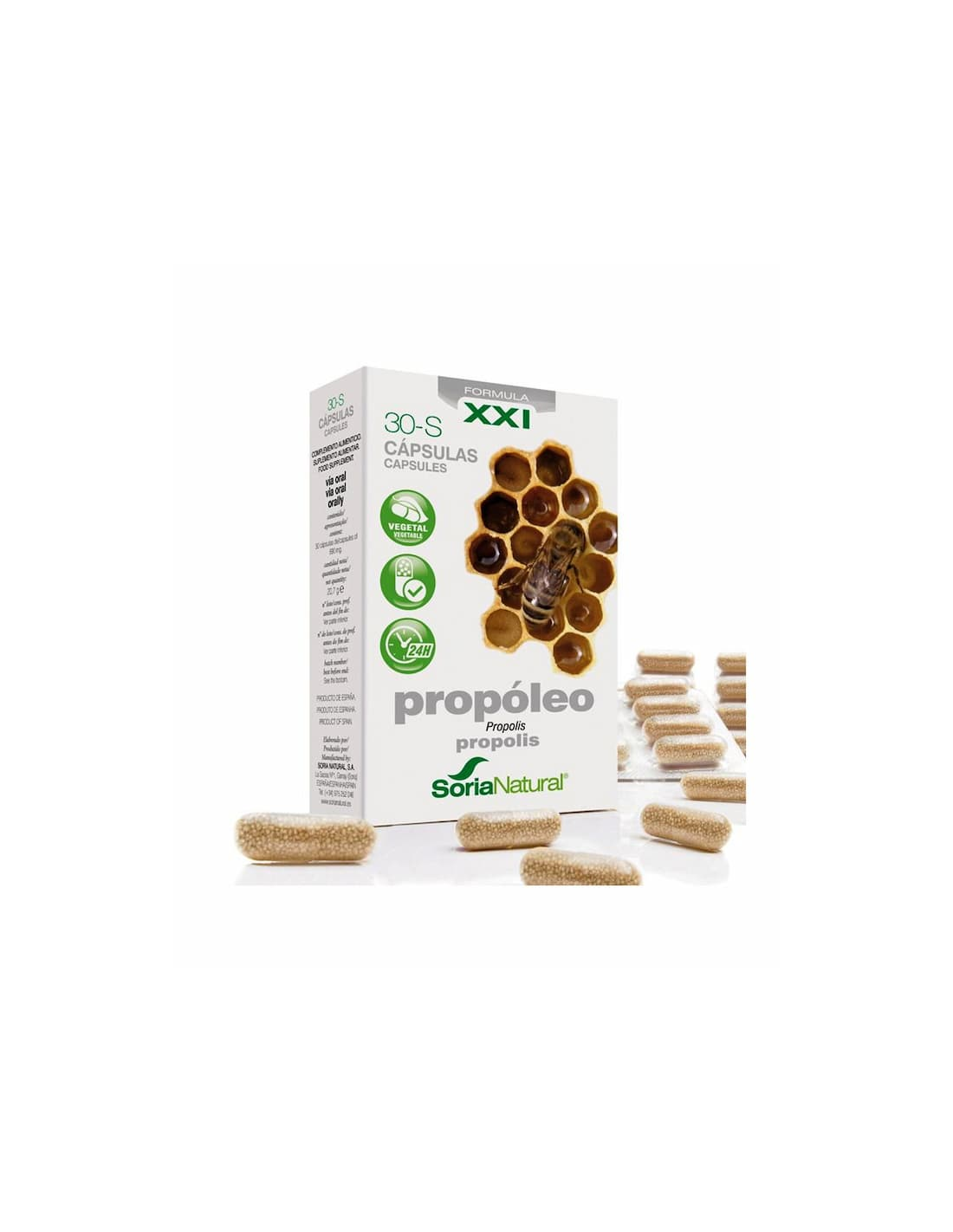 Extracto liofilizado de propóleo (Propolis) (300 mg): estabilizador: celulosa microcristalina, alfa-ciclodextrina (60 mg), agente de recubrimiento: copolímero de metacrilato neutro, cápsula (hidoxipropilmetilcelulosa).