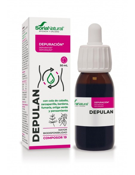 Depulán Complex es una combinación de plantas con acción depurativa, diurética, colagoga, colerética y remineralizante. Por estas propiedades está indicado en curas depurativas. Útil contra el acné, eczemas y otras enfermedades de la piel. Se puede usar como coadyuvante en reumatismos, artritis, artrosis y ácido úrico. Mejora una mala circulación y es beneficioso en curas de desintoxicación en general (contaminación, alcoholismo, medicamentos).