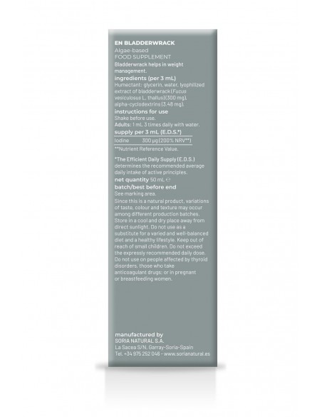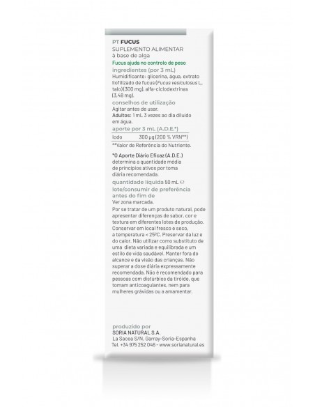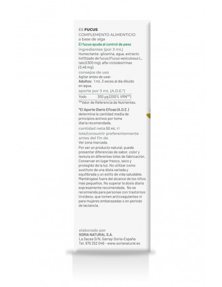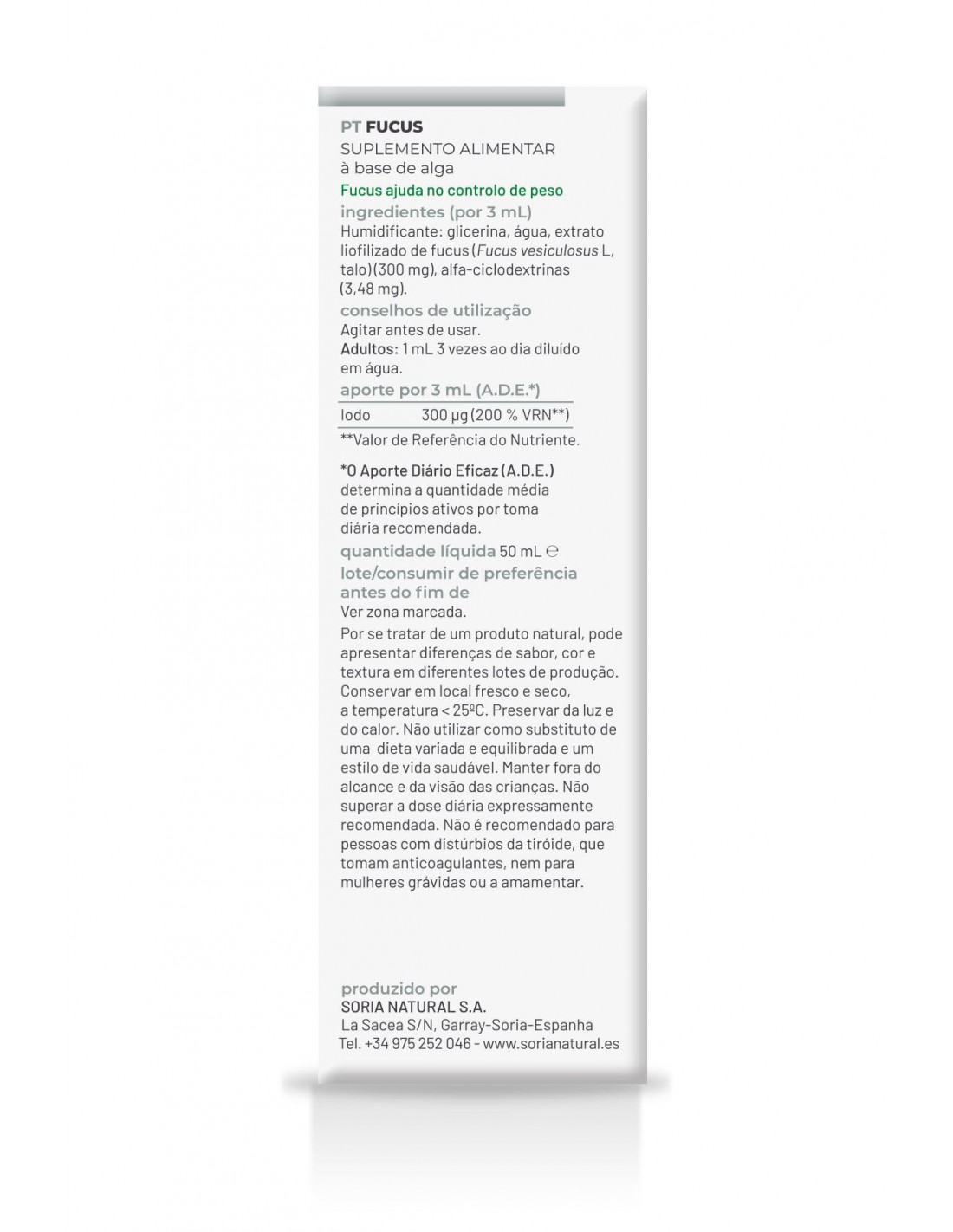 El fucus es un complemento ideal para dietas de control de peso ya que estimula el metabolismo, es saciante y laxante.