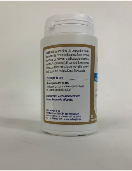 Ergycox esuna asociación de extractos de plantas seleccionadas, incluyendo Boswellia, Cúrcuma, Harpagofito y Sauce. Esta combinación de ingredientes ha sido elegida por sus propiedades que apoyan el bienestar.