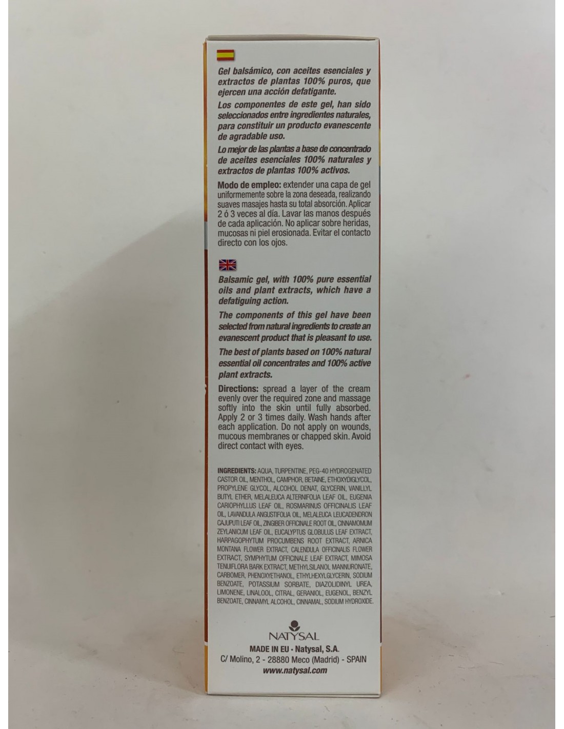 Gel balsámicocon acciónanalgésicaa base deaceites esenciales y extractos de plantas 100% puros.