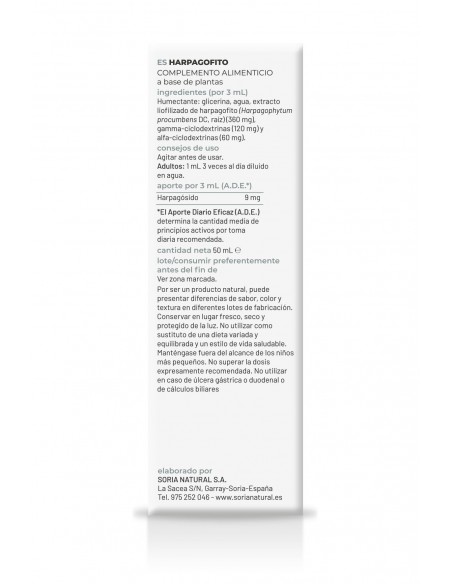 Ingredientes: Extracto de harpagofito en glicerina vegetal.