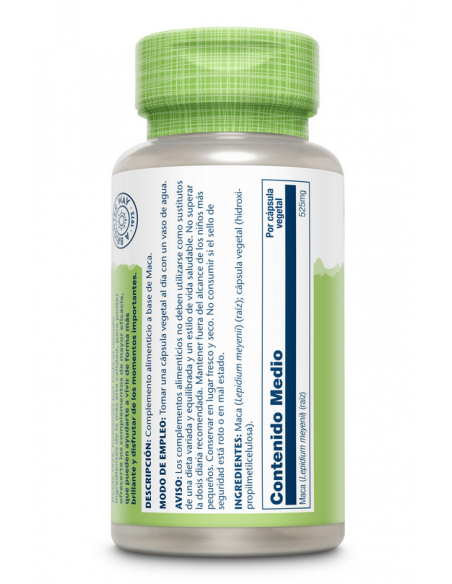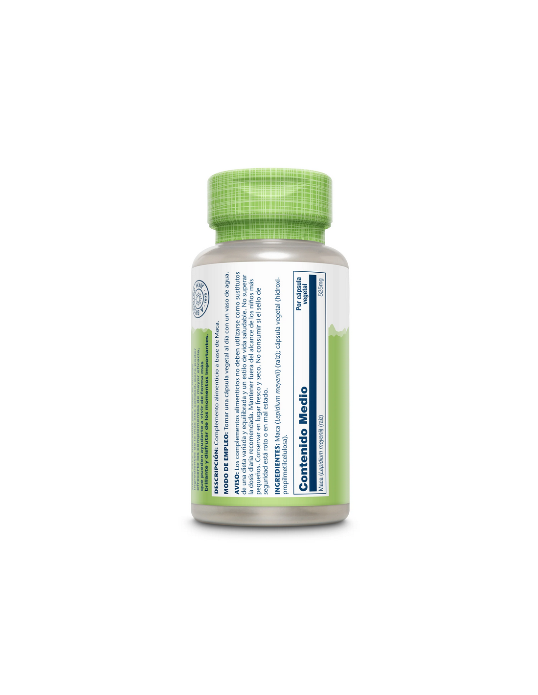 Maca (Lepidium meyenii) (raíz), cápsula de celulosa vegetal.
