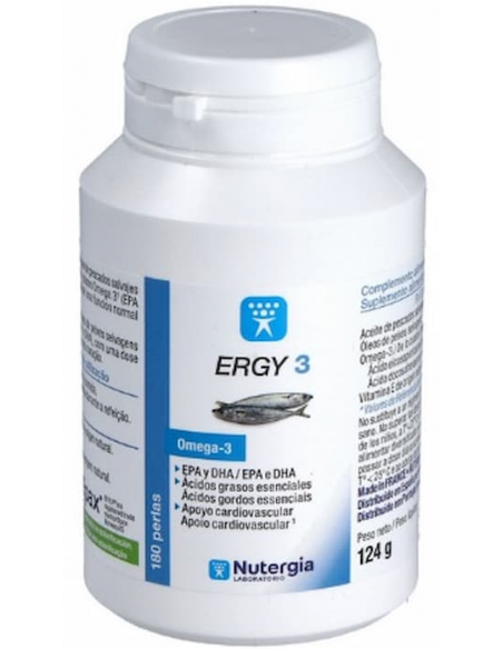 Ergy 3 es un suplemento alimenticio compuesto por aceites de pescado de alta calidad y certificación. La anchoa, un tipo de pescado graso utilizado en Ergy 3, brinda un aceite rico en ácidos grasos omega-3, en particular EPA y DHA. El ácido graso Omega-3 es un tipo de grasa esencial que se encuentra en algunos alimentos y suplementos dietéticos. Está compuesto por ácidos grasos poliinsaturados, que son necesarios para una buena salud, pero que el cuerpo humano no puede producir por sí mismo. Por ello, es posible obtenerlos a través de la alimentación o suplementos.