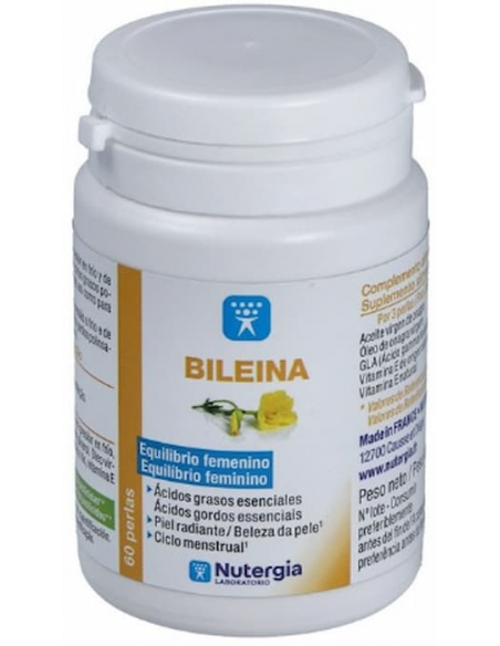 El aceite de onagra presente en Bileina de Nutergia, es una fuente natural de ácidos grasos poliinsaturados, como el ácido linoleico y el ácido gamma-linolénico. Estos ácidos grasos son beneficiosos para la mujer, puede ayudar en casos relacionados con el ciclo menstrual y problemas de la piel.