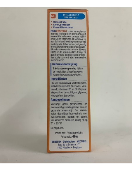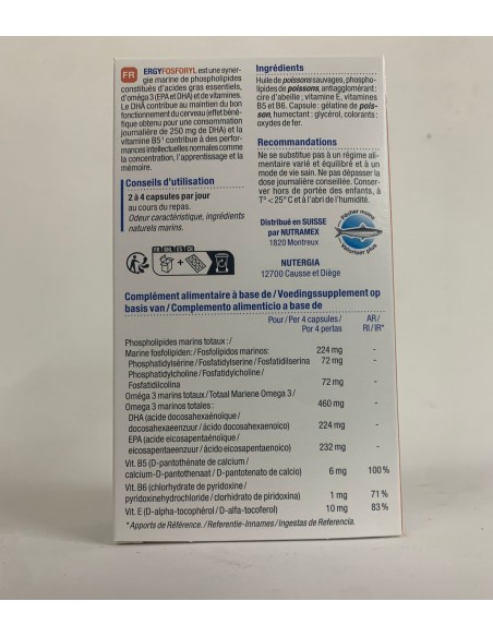 El producto Ergyfosforyl de Nutergia se compone de un ingrediente innovador llamado Cogni-Phos® que combina fosfolípidos, DHA y aceites de pequeños pescados salvajes ricos en omega 3. Todos estos componentes son de origen natural y garantizados sin la presencia de esteres-etílicos o metales pesados.
