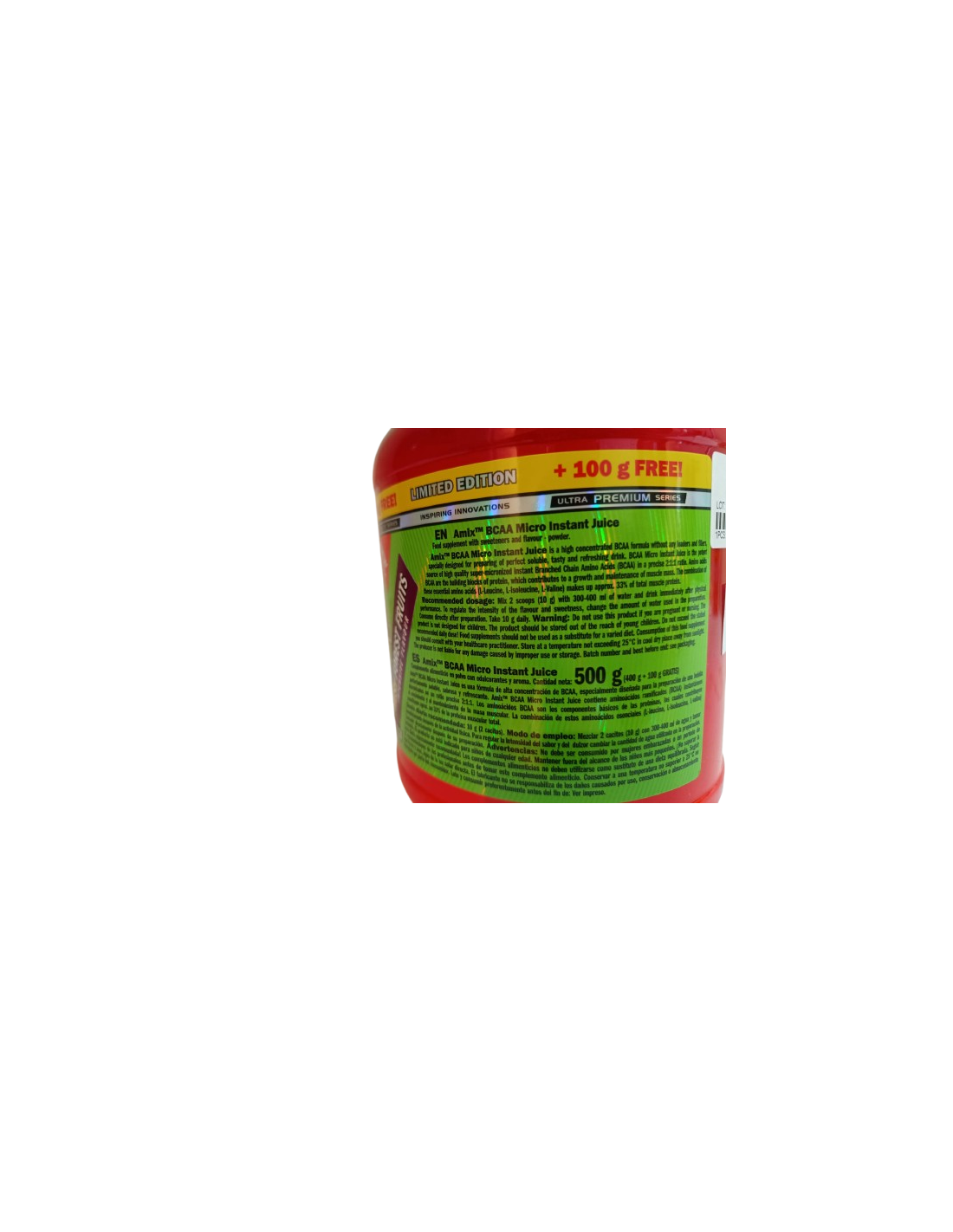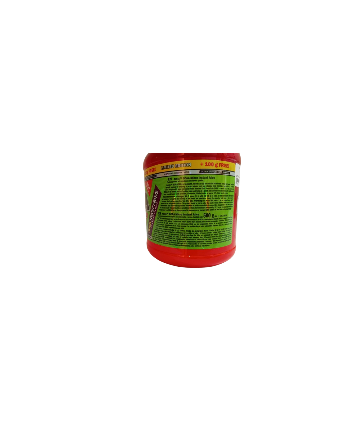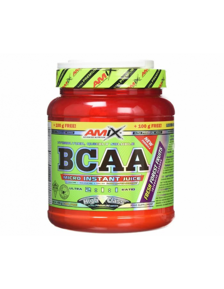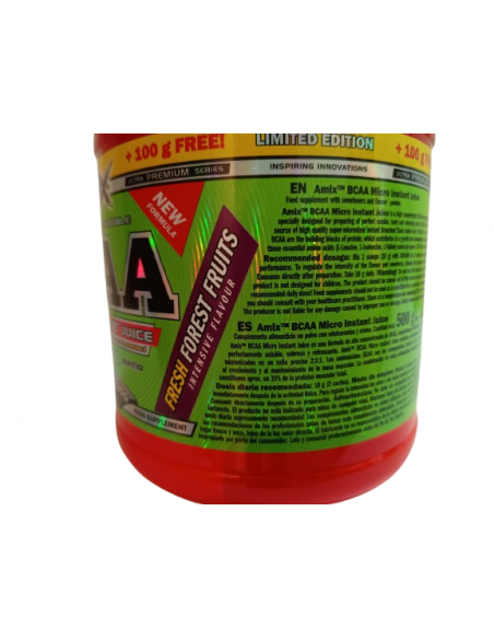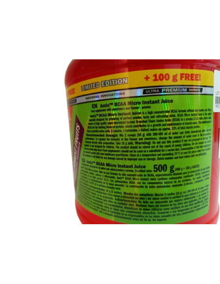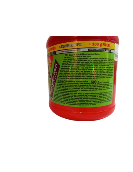 Los BCAA MicroInstantJuicees una fórmula de BCAA altamente concentrada sin cargas ni rellenos, especialmente diseñada para preparar una bebida soluble, sabrosa y refrescante perfecta.