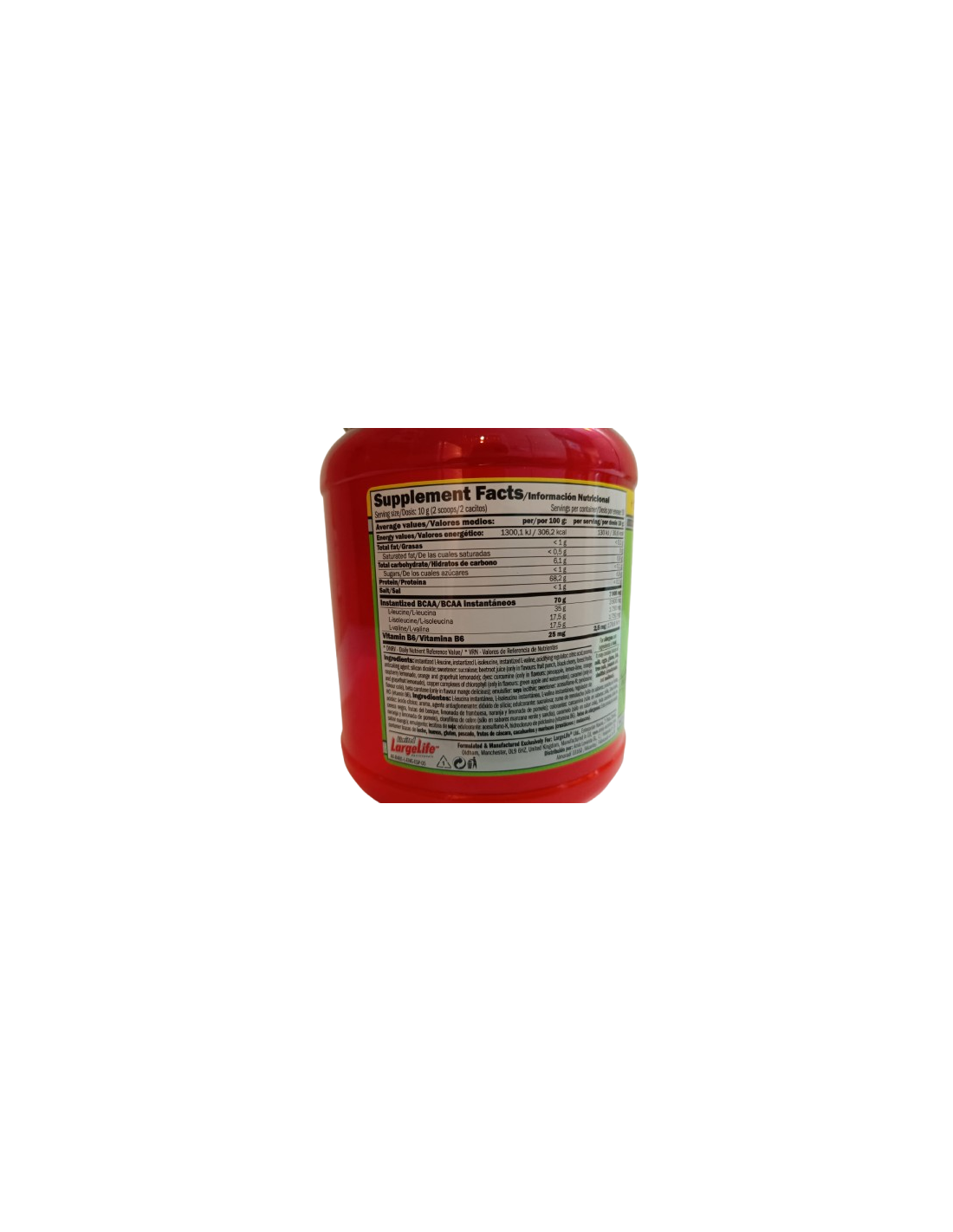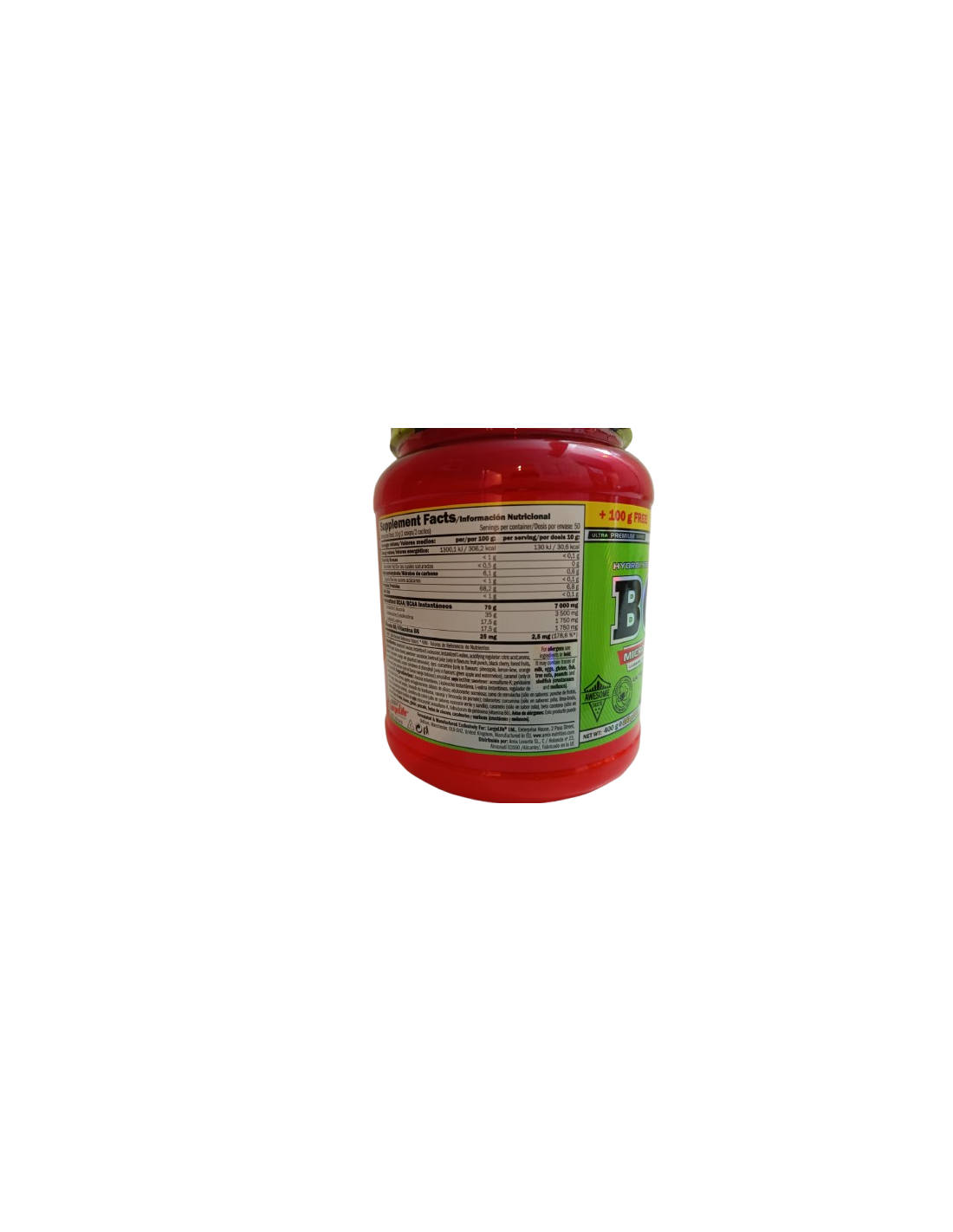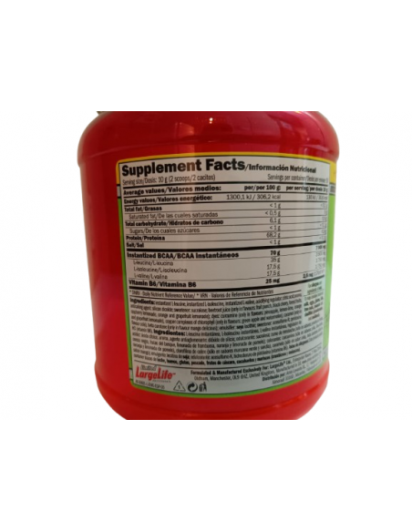 Es unafuente potente de aminoácidos de cadena ramificada instantáneos súper micronizados (BCAA) de alta calidad en una proporción precisa de 2: 1: 1.