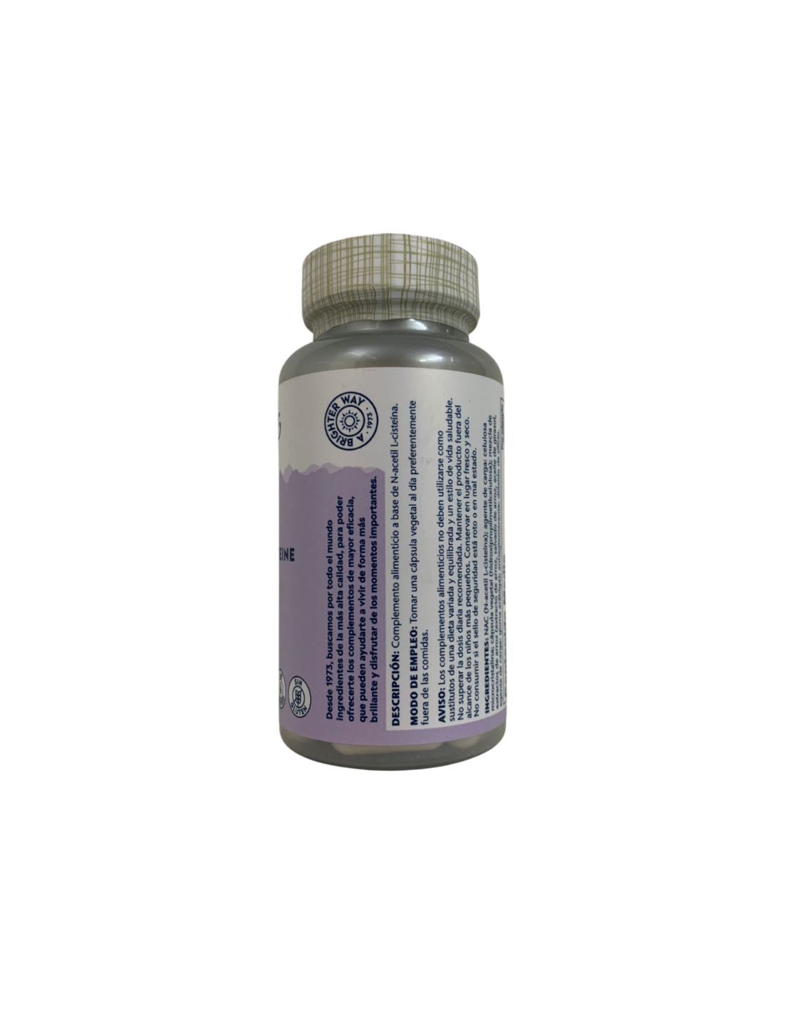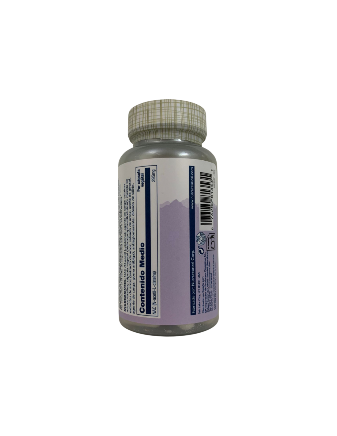 El ingrediente principal es la forma acetilada del aminoácido L-cisteína, también conocido como N-acetilcisteína (NAC). Este compuesto es un precursor del glutatión, una molécula antioxidante natural que se encuentra en las células del cuerpo humano. Además, contiene otros ingredientes como celulosa vegetal, sílice y estearato de magnesio.