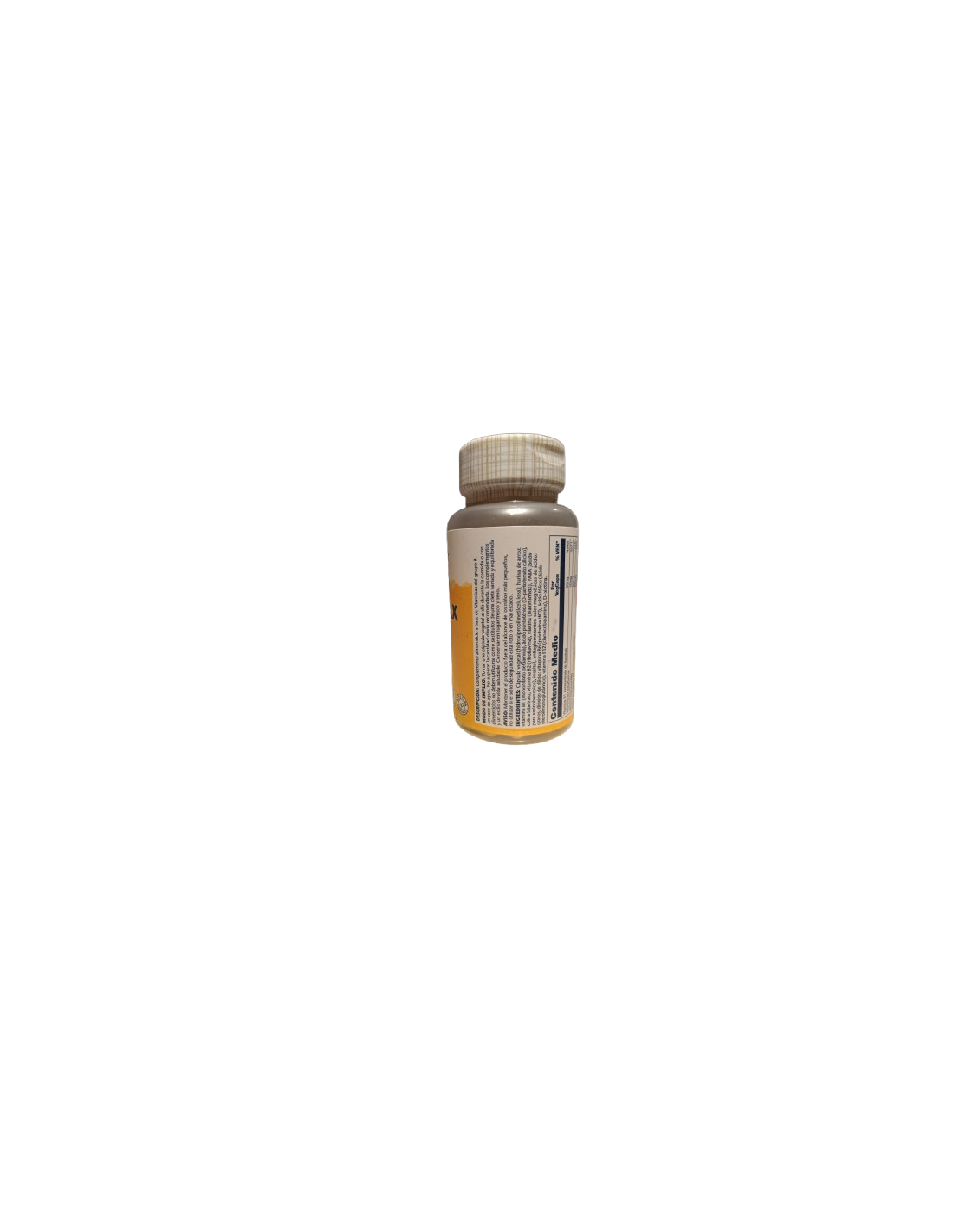 Cápsula de celulosa vegetal: base de alimentos entreos (concentrado de arroz intregral), vitamaina B1 ( mononitrato de tiamina), Ác. Pantoténico (pantotenato d- cálcico), Vitamina B2 (riboflavina), niacina (niacinamida), PABA ( ac. para aminobenzoico), Colina bitratrato, Inositol, Vitamina B6 (piridoxina HCI), antiaglomerante : estearato de magensio y dióxido de sílice: ácido fócio (folato), vitamina B12 (cianocobalamina), Biotina.