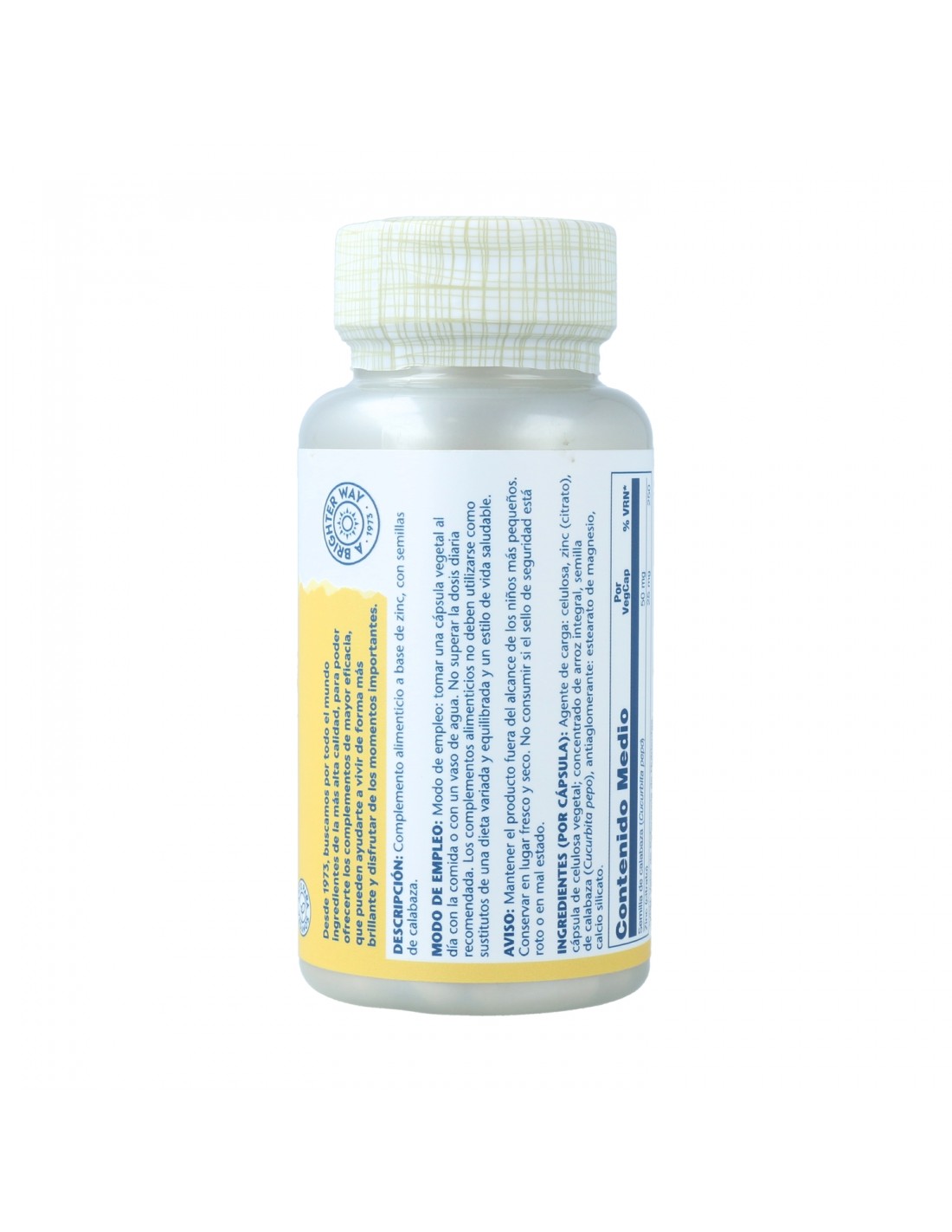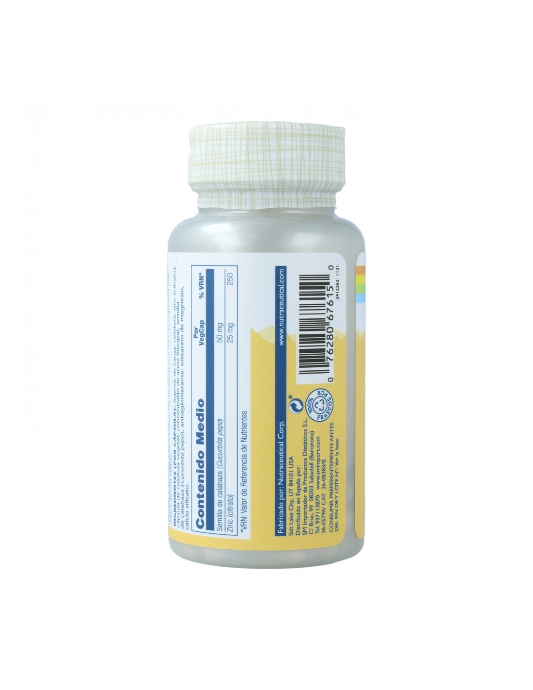 Agente de carga: celulosa, zinc (citrato), cápsula de celulosa vegetal: concentrado de arroz integral, semilla de calabaza (Curbubita pepo), antiaglomerante: estearato de magnesio, calcio silicato.