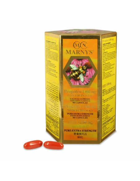 Aceite de germen de trigo [gluten], propóleo purificado y concentrado en polvo de equinácea (Echinacea purpurea). Cápsula: gelatina, glicerina, sorbitol, colorantes (óxido de hierro rojo) y agua.
