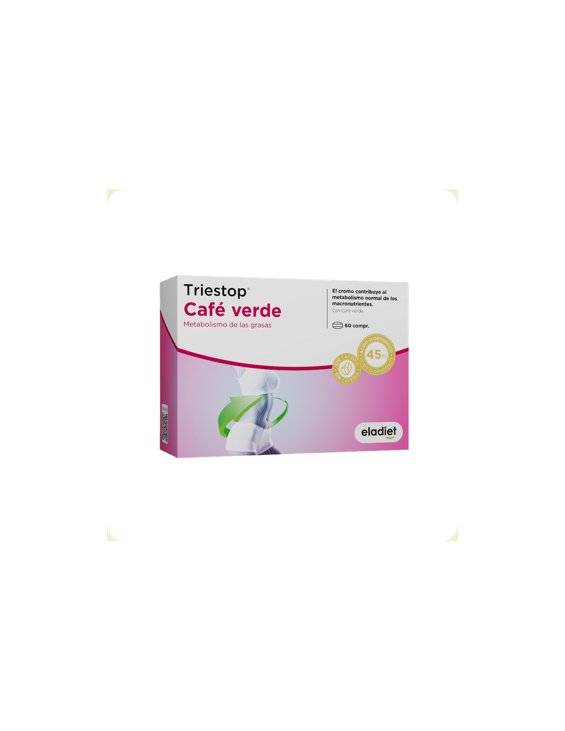 Por 2 comprimidos: Extracto seco de bayas de Café verde (900 mg); Picolinato de Cromo (0,332 mg, 45% Ácido clorogénico 405mg, Cromo (40 μg, 100% VRN*)