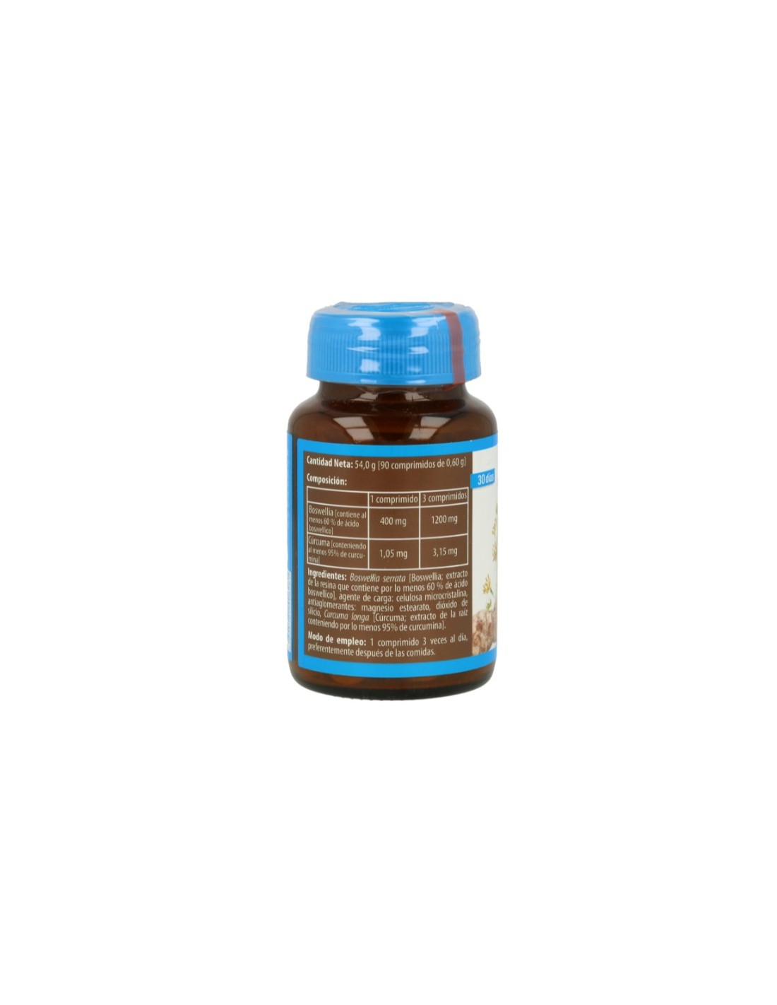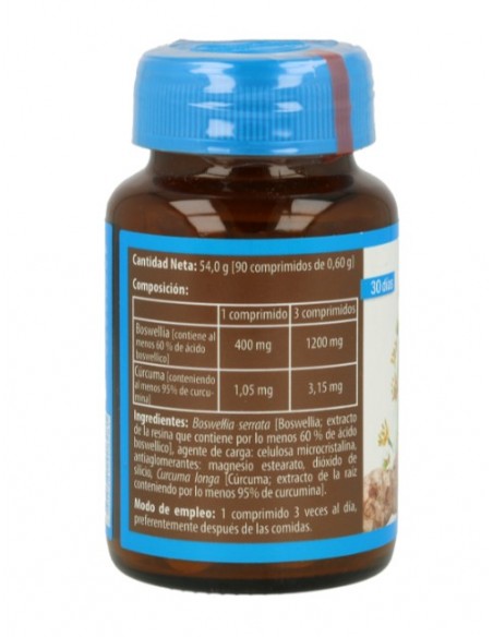 Boswellia (conteniendo al menos 60% de ácido boswéllico) 1200 mg, Cúrcuma (conteniendo al menos 95% de curcumina) 3,15 mg.