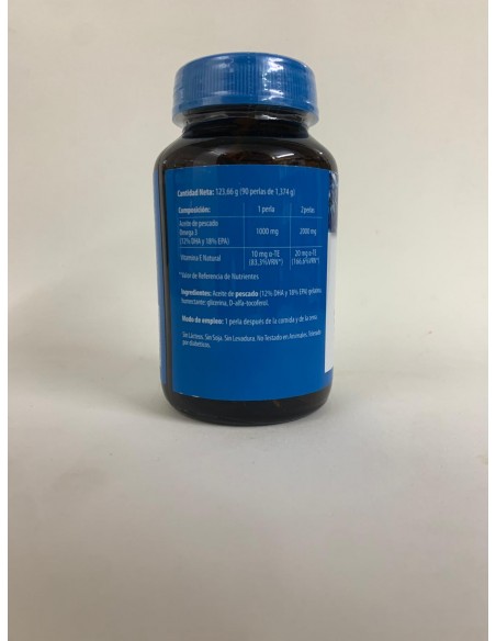 Aceite de pescado Omega 3 (12% DHA - ácido docosahexaenóico - y 18% EPA – ácido eicosapentaenóico -), gelatina, glicerina USP, D-alfa-tocoferol.