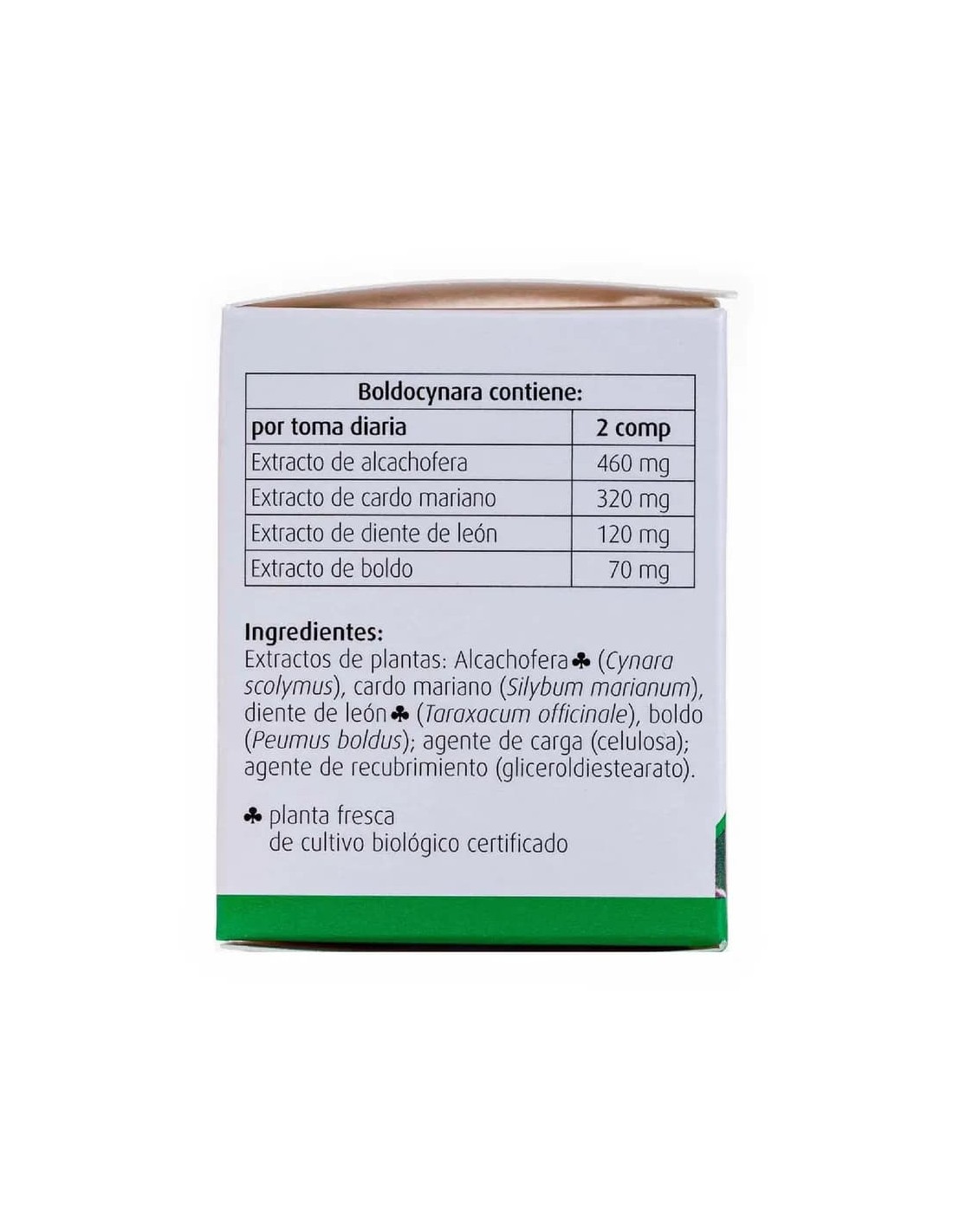 Alcachofera* folium tintura, 230 mg: Cardo mariano fructus tintura,160 mg: Diente de león* radix cum herba tintura, 60 mg: Boldo folium tintura, 35 mg.