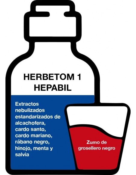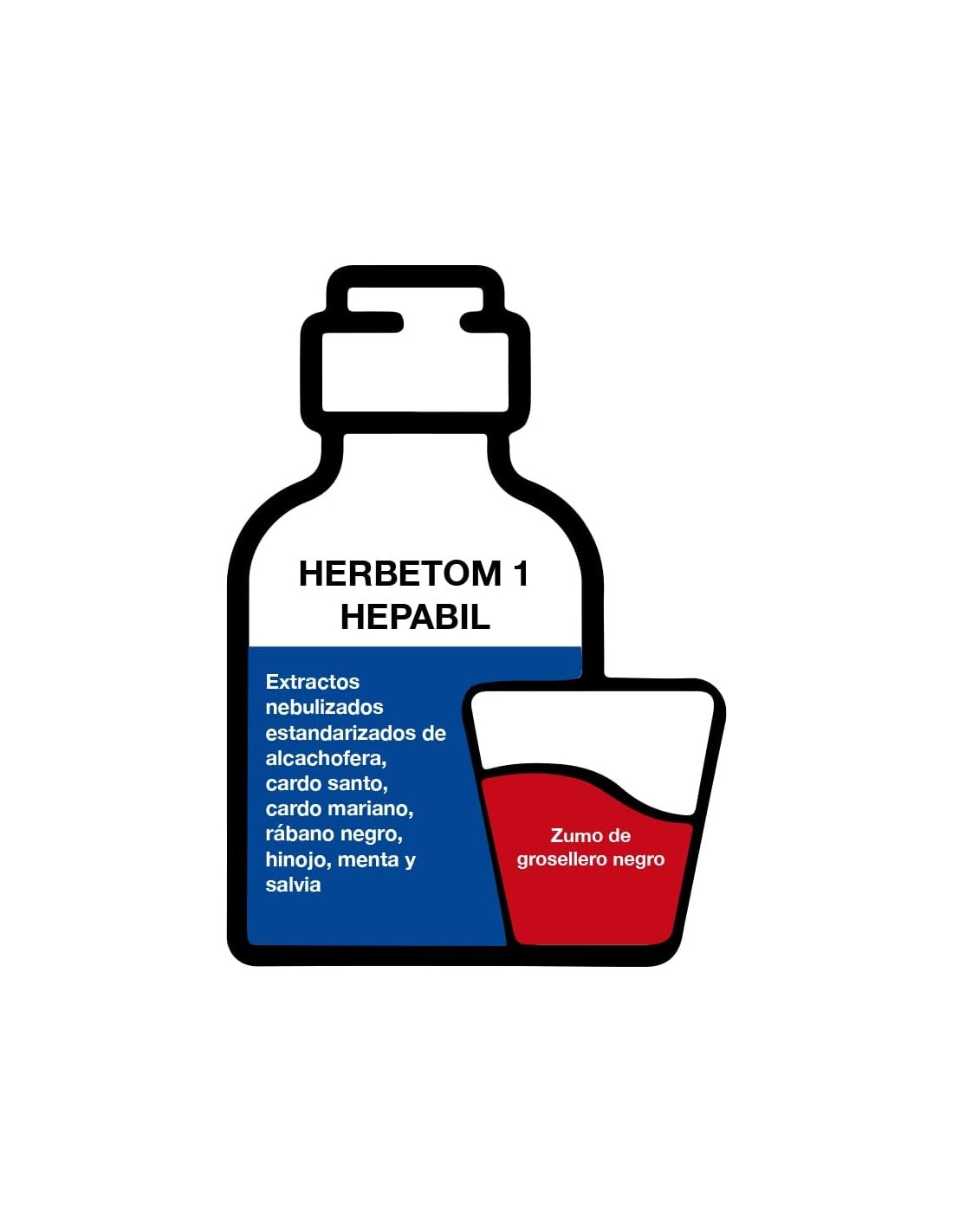 Agua, fructosa, zumo concentrado de grosellero negro (Ribes nigrum L.), extractos nebulizados estandarizados de cardo mariano (Silyibum marianum (L.) Gaertn.) 90 mg, alcachofera (Cynara scolymus L.) 80 mg, cardo santo (Cnicus benedictus L.) 60 mg, rábano negro (Raphanus sativus L.) 40 mg, hinojo (Foeniculum vulgare Miller) 30 mg, menta (Mentha x piperita L.) 30 mg y salvia (Salvia officinalis L.) 25 mg, conservante (sorbato potásico).