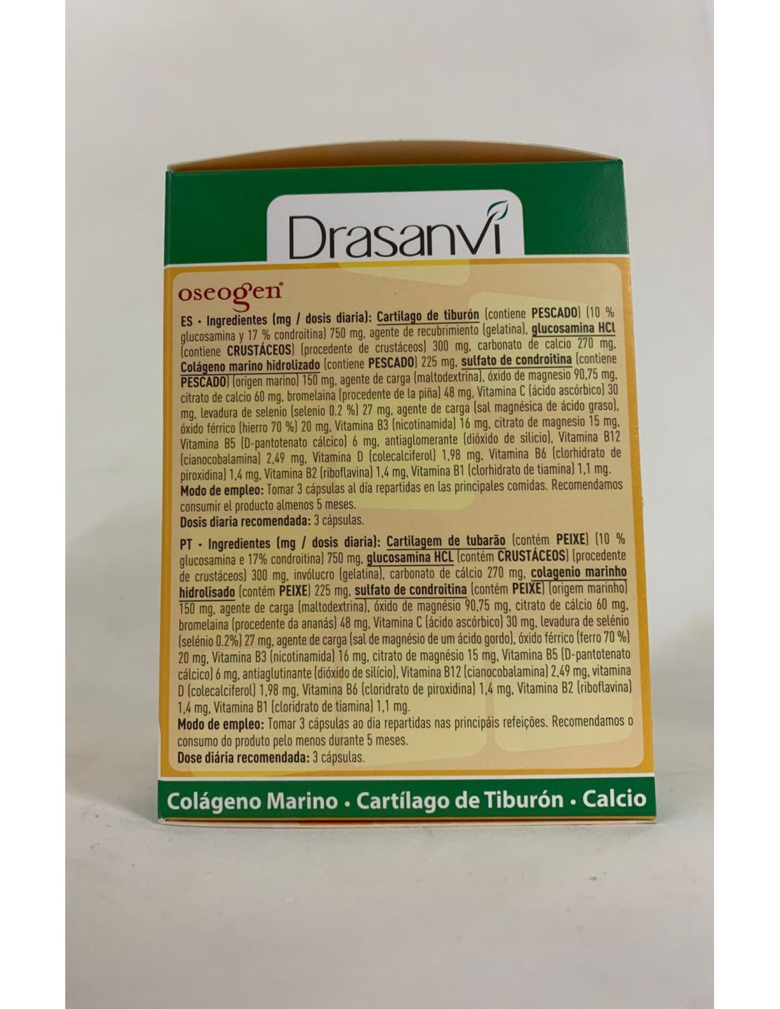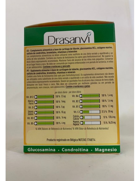 Producto que incorpora en su composición nutrientes como el colágeno marino, el cartílago de tiburón, la condroitina y el sulfato de glucosamina para contribuir al normal funcionamiento de cartílagos y huesos. Además de la alta concentración de los nutrientes ya señalados cabe destacar la presencia de 8 Vitaminas (7 de ellas aportan un 100% de cantidad diaria recomendada) y de minerales esenciales.