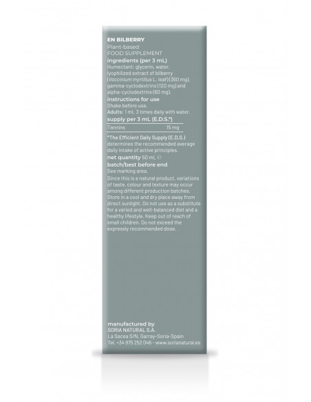 Por 3 ml: Humectante: glicerina, agua, extracto liofilizado de arándano (Vaccinium myrtilus L, hoja) (360 mg), gamma-ciclodextrinas (120 mg) y alfa-ciclodextrinas (60 mg).