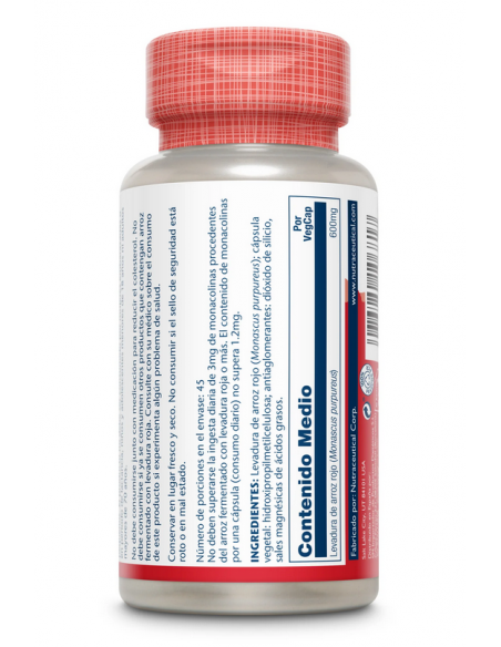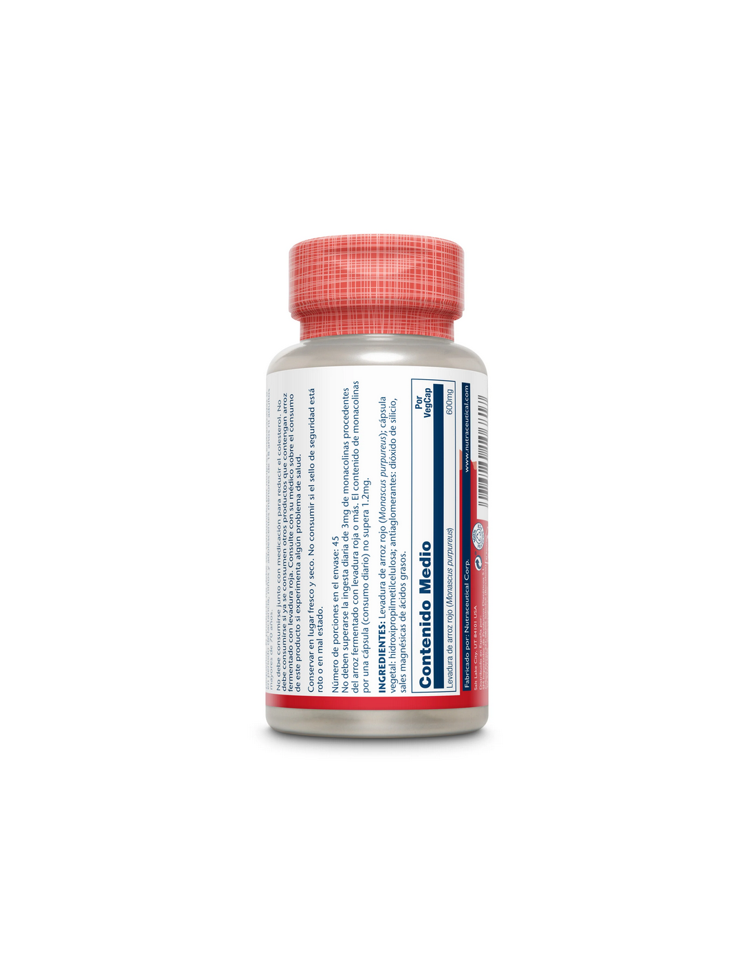 Levadura roja del arroz (Monascus purpureus), cápsula: celulosa vegetal, antiaglomerante: sílice, estearato de magnesio.