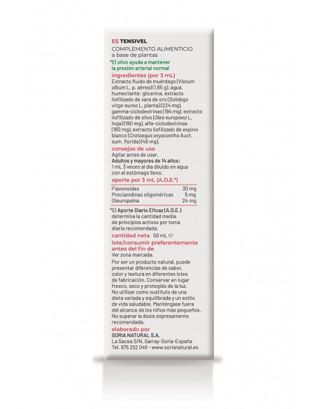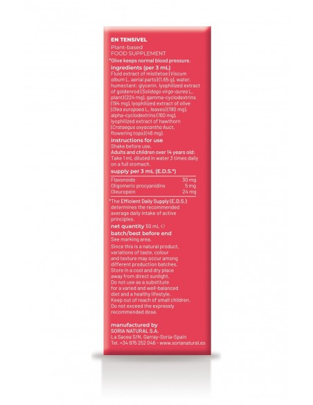 (por 3 mL): Extractos fluido de Muérdago (Viscum album L, p. aérea) (1,65 g), agua, humectante: glicerina, extracto liofilizado de Vara de Oro (Solidago virga-aurea L, planta) (224 mg), gamma-ciclodextrinas (194 mg), extracto liofilizado de olivo (Olea europaea L, hoja) (190 mg), alfa-ciclodextrinas (160 mg), extracto liofilizado de Espino blanco (Crataegus oxyacantha Auct, sum. florida) (46 mg).