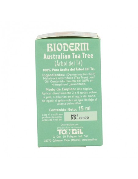 100% Melaleuca alternifolia (Tea Tree) Leaf oil. Contenido mínimo del 38% en 4-terpineol garantizado.