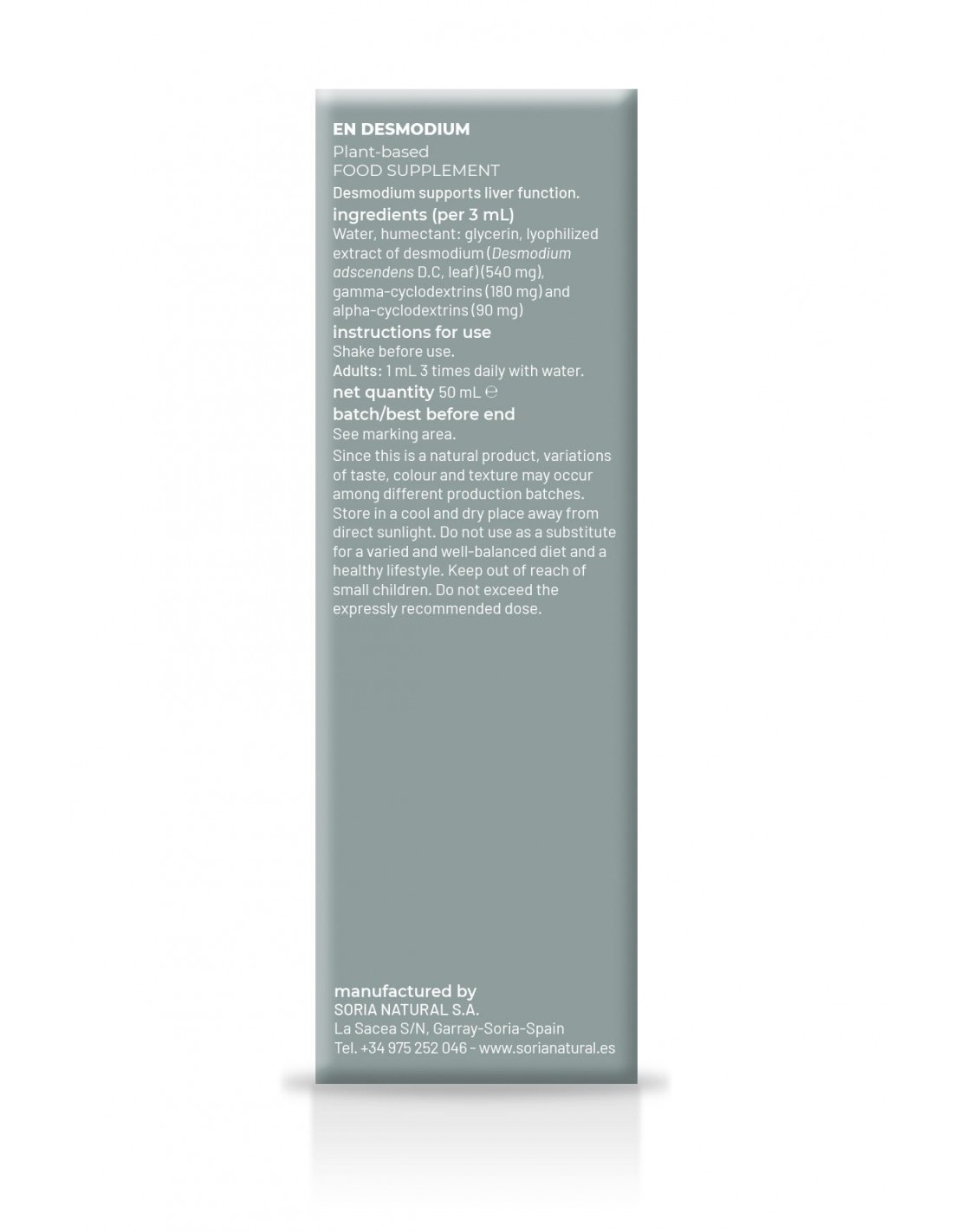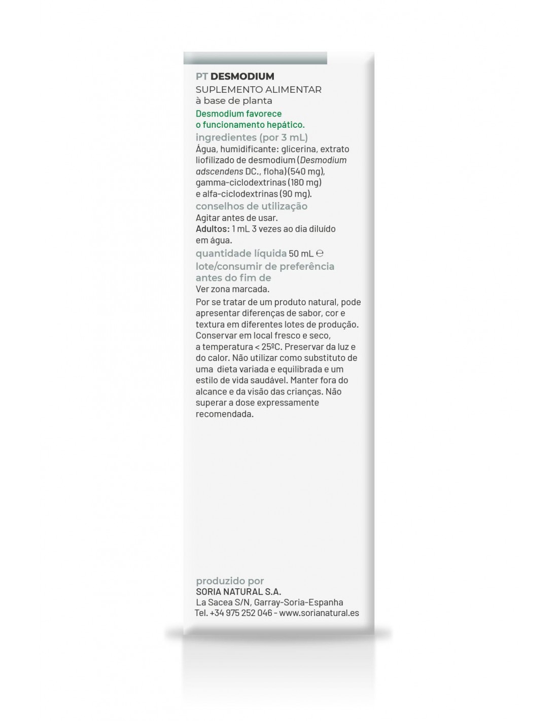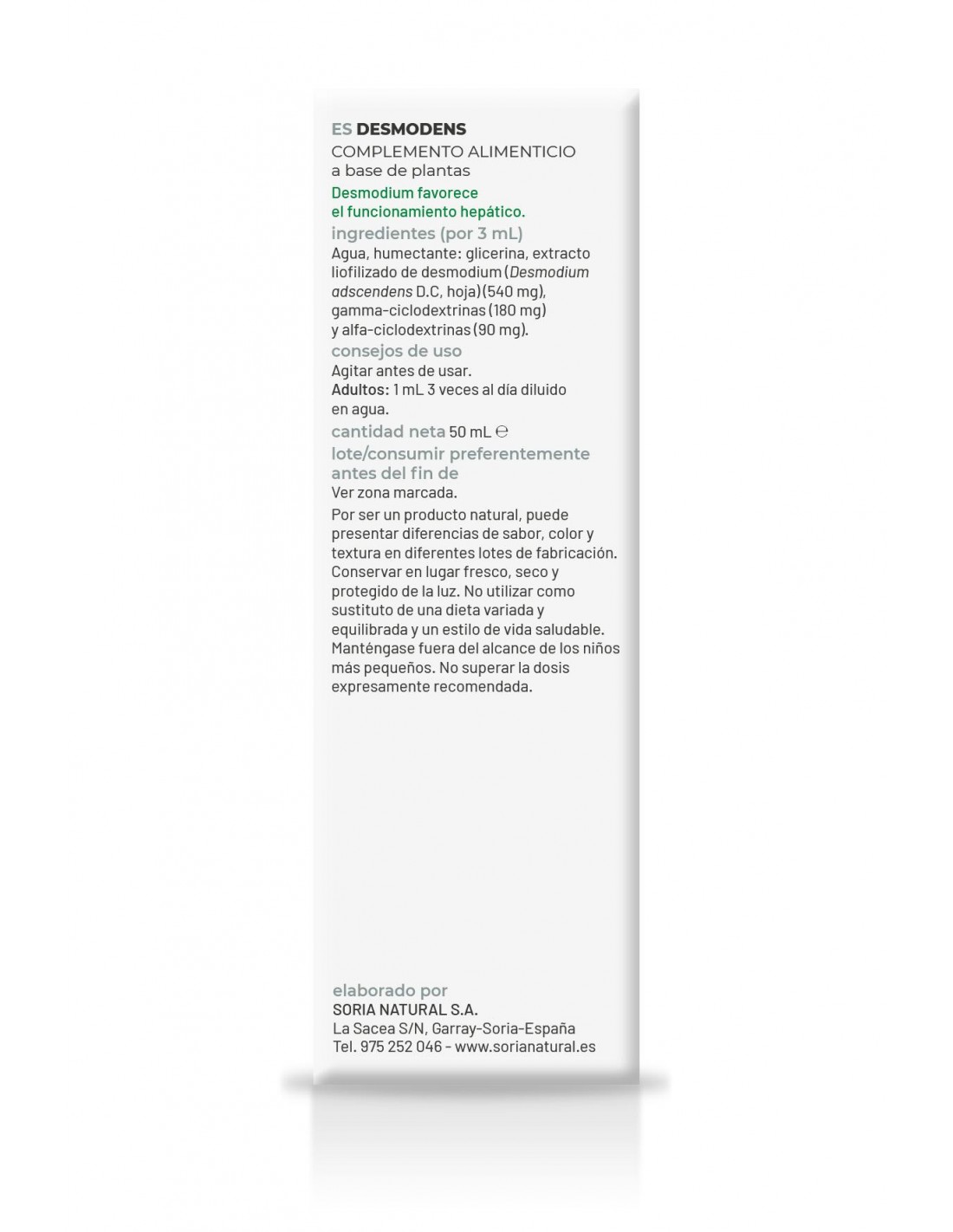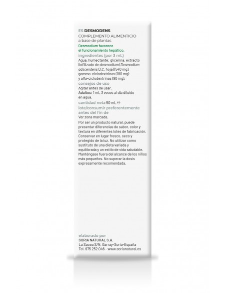 Por 3 ml: Humectante: glicerina, agua, extracto liofilizado de desmodens (Desmodium adscendens D.C. hoja) (540 mg), gamma-ciclodextrinas (180 mg) y alfa-ciclodextrinas (90 mg).