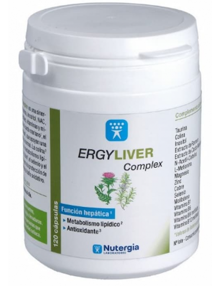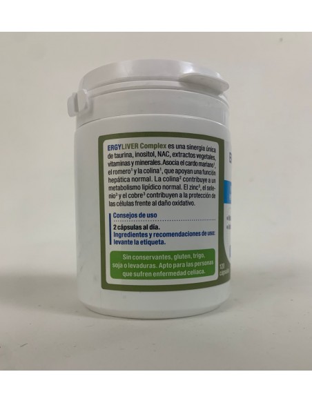 Ergyliver complex es un suplemento que ofrece una sinergia única de taurina, inositol, NAC, extractos vegetales, vitaminas y minerales. Además, combina el cardo mariano, el romero y la colina, que apoyan una función hepática normal. La colina contribuyea un metabolismo lipídico normal, y el zinc, el selenio y el cobre contribuyen a la protección de las células frente al daño oxidativo.