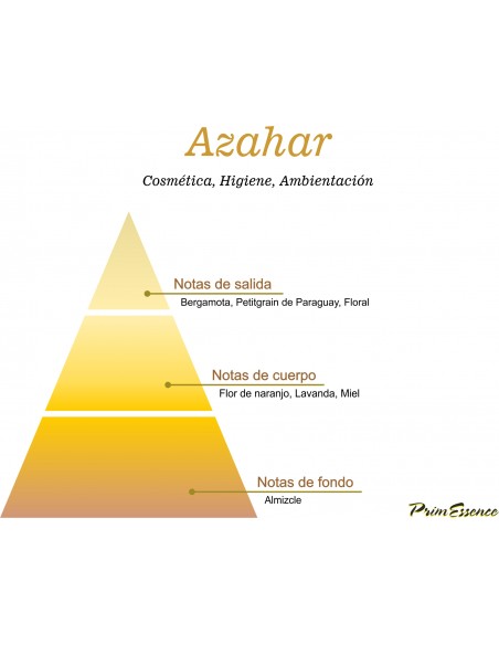 Esencia de Azahar cuenta con grandes aplicaciones con las que podrás hacer ambientadores para el hogar, aromatizar cosméticos caseros o industriales y productos de higiene, como jabones sólidos y líquidos, cualquier tipo de crema y productos de higiene personal… En esta esencia destaca elaroma a azahar. Se trata de una fragancia floral con matices cítricos, que evoca a un paseo en primavera por el litoral Mediterráneo. Laesencia azaharse utiliza como efecto reconfortante y relajante. Además es un aroma que desprende paz y facilita el sueño.