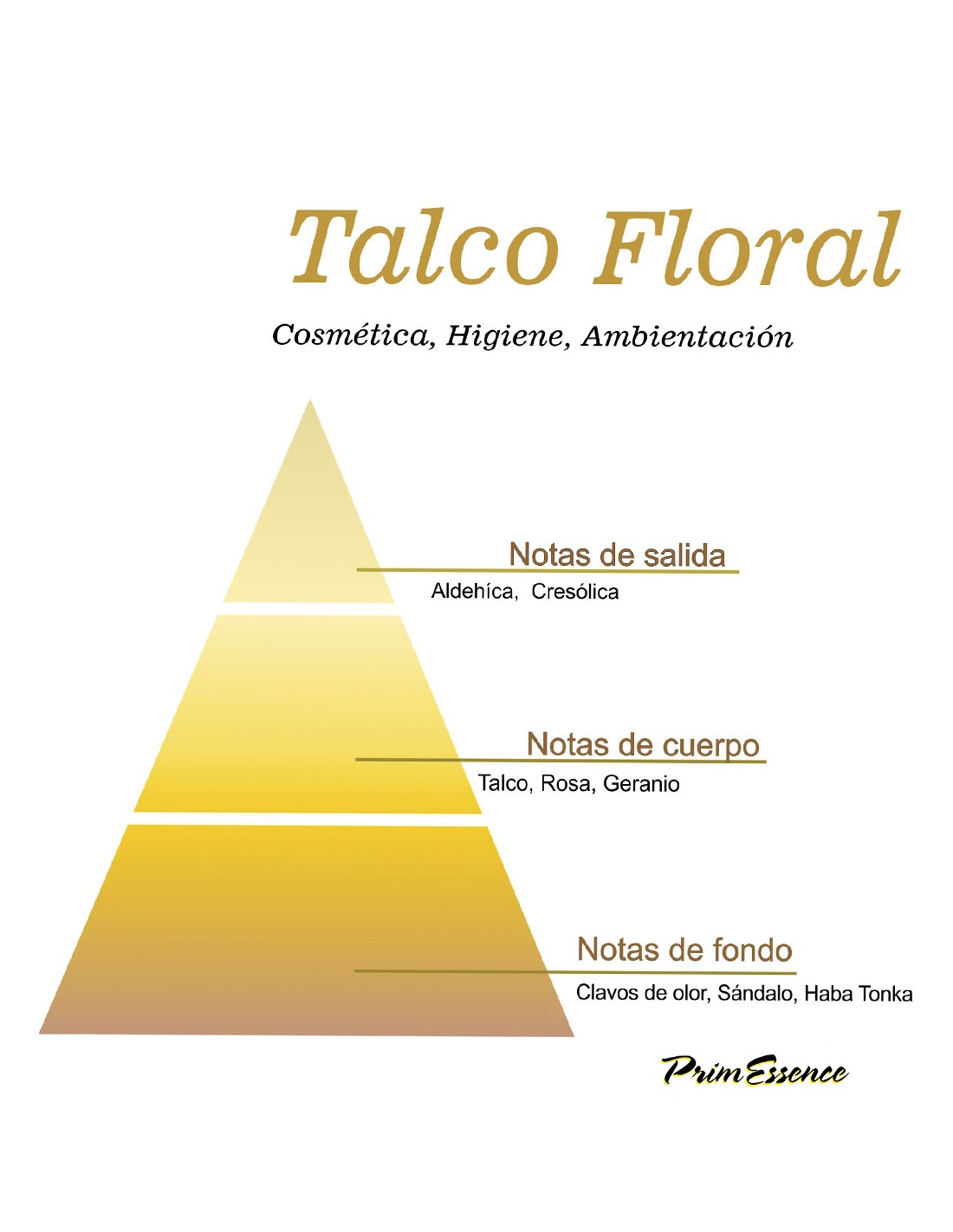 La esencia de Talco floral, es como bien ya su nombre indica, una esencia floral con notas frescas y matices amaderados, así es laesencia talco floralde PrimEssence. En ella encontrarás notas tales como geranio, rosa, sándalo... combinadas con la aromatización y el frescor de los clavos de olor y la calidez y sensualidad de la Haba Tonka. Se trata de una esencia irresistible, envolvente y muy delicada. Con ella podráshacer todo tipo de productos de ambientaciónde forma fácil y rápida, además, te servirá para darle un agradable aroma a tus productos de higiene caseros como bombas de baño,jabones, ambientadores y además podrás utilizarlo para crear cosméticos como cremas, mascarillas ... Es concentrada y muy versátil.