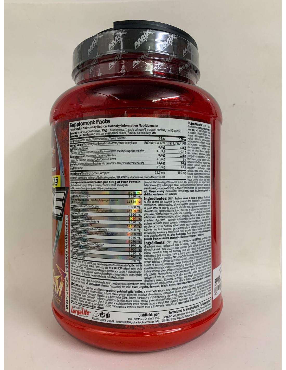 Totalmente libre de aspartato (Apartame Free®) y contiene Splenda®, un edulcorante natural que nos asegura un excelente sabor, pero que no nos aporta nada de grasa ni azucares añadidos. Contiene encimas digestivas Digezyme® para proporcionarnos la máxima absorción.