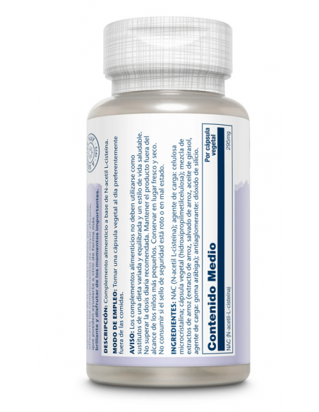 La NAC, es una forma acetilada del aminoácido L-cisteína. Es un precursor del glutatión, el cual es parte del sistema de defensa antioxidante del organismo.Apto para vegetarianos.