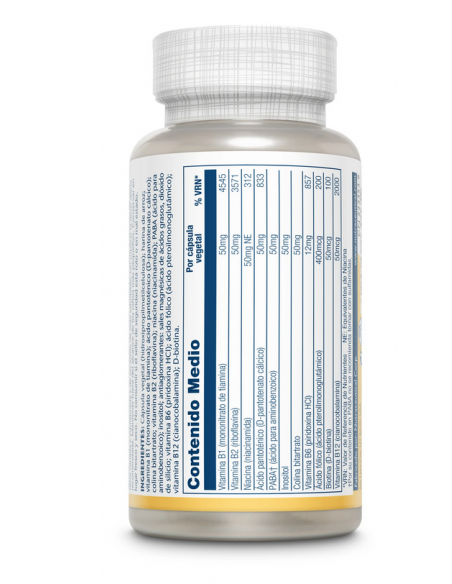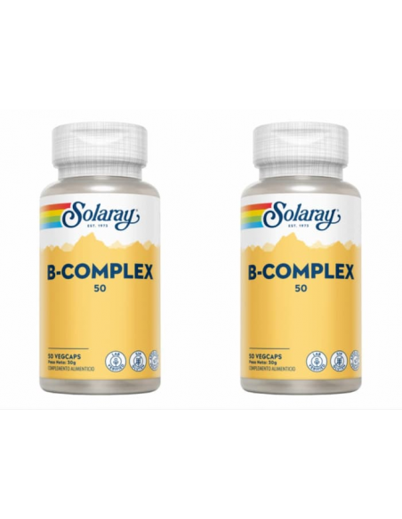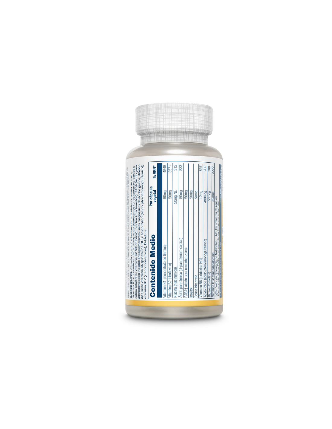 Es un complemento nutricional que contiene una combinación de vitaminas del grupo B, incluyendo la vitamina B6 y B12, que pueden ayudar al funcionamiento del organismo. B-Complex 50 contiene innumerables propiedades, y su combinación de vitaminas biodisponibles puede ayudar a la absorción de estos nutrientes en el cuerpo. Las vitaminas del complejo B son importantes para ayudar en la producción de energía, y para ayudar al cuerpo a convertir los alimentos que consumimos en energía. Además favorece al sistema digestivo , este suplemento contribuye al metabolismo de los carbohidratos, proteínas y grasas. Este producto también puede ayudar a la salud cardiovascular. Las vitaminas del grupo B son importantes para ayudar al mantenimiento de la piel, el cabello y las uñas.