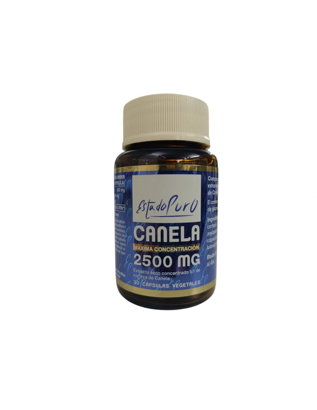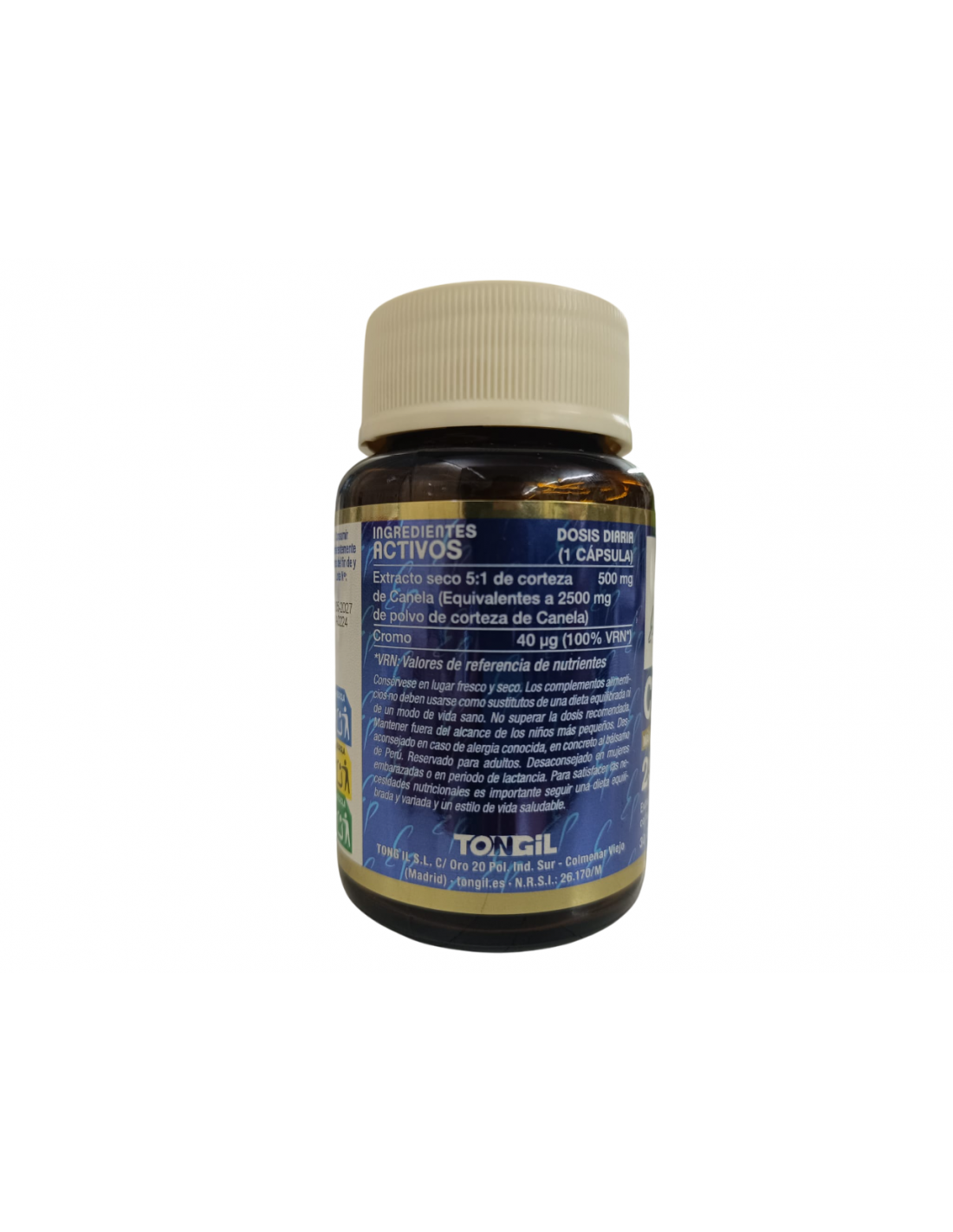 Extracto seco 5:1 de corteza de Canela de Ceylan (Equivalentes a 2500 mg de polvo de corteza de Canela)...........................500 mg