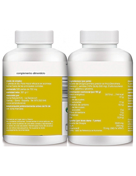 ONAGRA PERLAS 702 Miligramos 500 Cápsulas