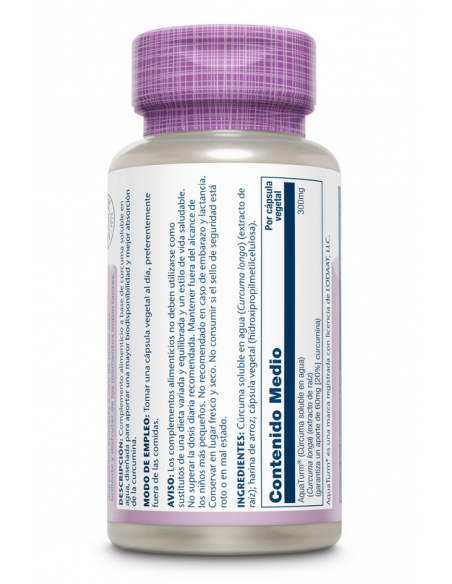 La curcumina, principal componente de la cúrcuma, es una molécula con propiedades para apoyar al normal funcionamiento del organismo. Sin embargo, su absorción en el organismo puede ser limitada debido a su baja solubilidad en agua.Es una opción ideal para aquellas personas que buscan ayuda en procesos inflamatorios y problemas digestivos.