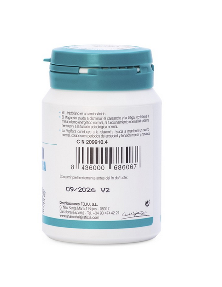 Triptófanocon Gaba + Pasiflora y Magnesio de Ana Maria Lajusticia ayuda a la relajación y a la conciliación normal del sueño. La unión de estos 4 ingredientes de origen natural facilita el descanso que el cuerpo necesita. Junto con unambiente tranquilo y luz suave, sus efectos empiezan a notarse a los pocos minutos. Además de propiciar elsueño, contribuye a mantenerlo durante toda la noche.