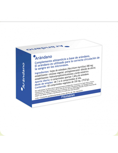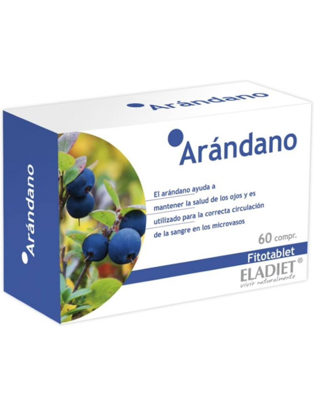 Arándano Fitotablets de Eladiet es un complemento alimenticio que ayuda a mantener la salud de los ojos y una correcta microcirculación sanguínea.