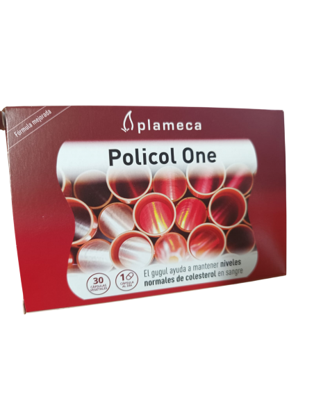 Policol One es un complemento alimenticio en cápsulas vegetales que ha sido elaborado utilizando plantas medicinales, arroz de levadura roja y coenzima Q10.