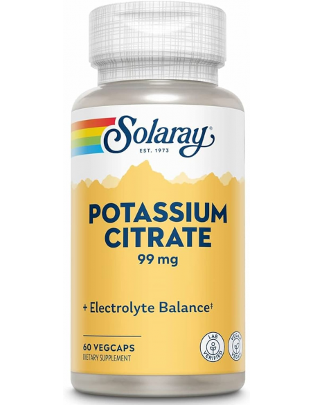 Citrato de Potasio de Solaray es un complemento que ofrece todos los beneficios de una manera fácil de absorber diseñado especialmente para aquellas personas con bajo contenido de ácido estomacal.El Citrato de Potasio de Solaray interviene para regular el balance de agua en el cuerpo y una correcta función renal. También ayuda a eliminar el exceso de ácido úrico en la sangre y en la orina.