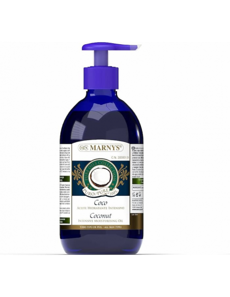 En el cabello, el Aceite de Coco actúa como acondicionador natural por su elevado efecto emoliente y tonificante, siendo ideal para revitalizar el pelo rebelde, seco y castigado o con tendencia al encrespamiento. Las propiedades hidratantes del Aceite de Coco vienen definidas por su alto contenido de ingredientes naturales: ácidos láurico y mirístico. Estos ingredientes naturales son respetuosos con las pieles más sensibles y con el cuero cabelludo, haciendo que el Aceite de Coco, se pueda utilizar diariamente cómo Emoliente e Hidratante. El Aceite de Coco se obtiene de la pulpa de la especie Cocos nucifera mediante un proceso que incluye desodorización. Gracias a su composición vegetal presenta una alta biodisponibilidad de sus componentes con la piel.