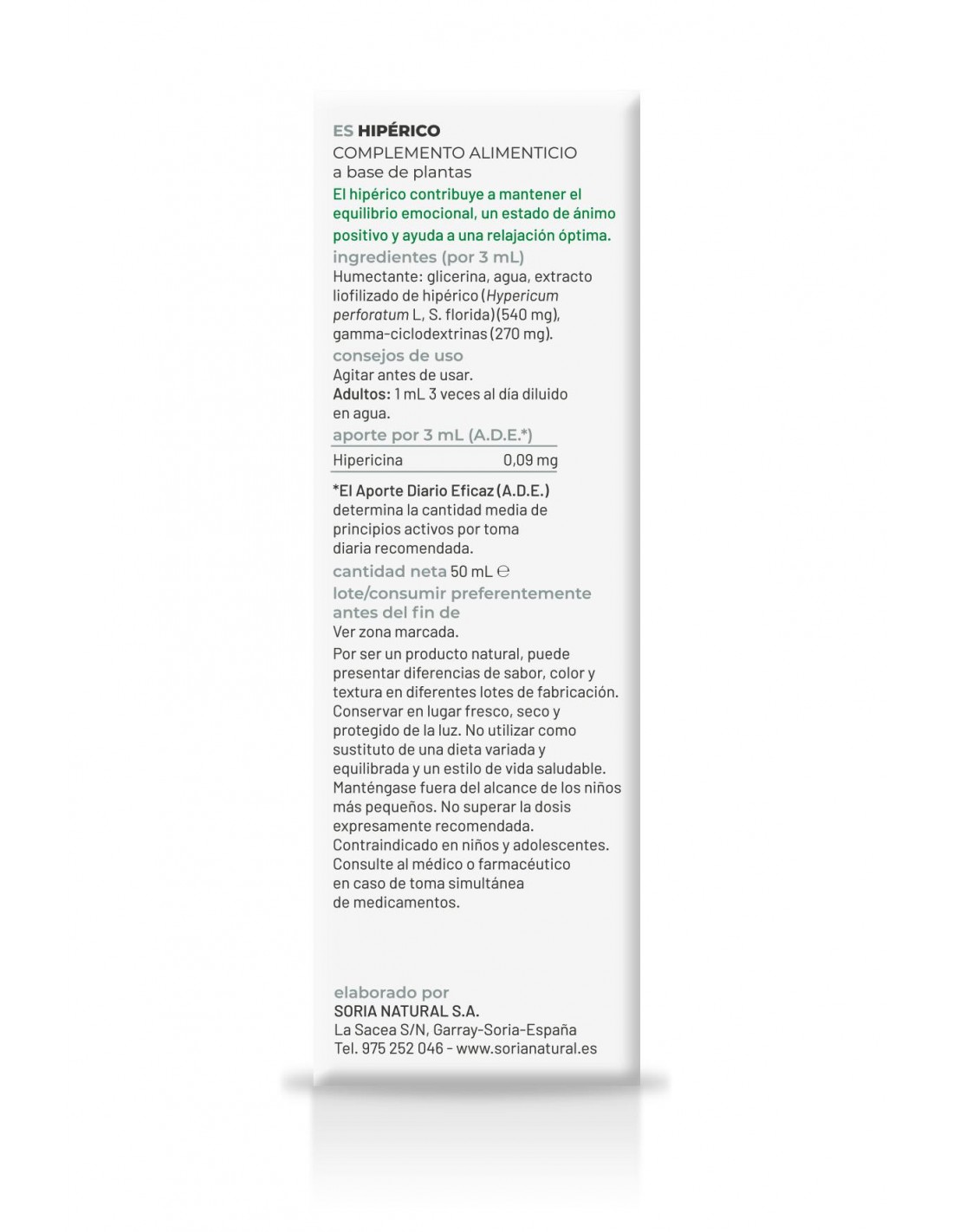 Extracto natural de hipérico que aporta una mayor biodisponibilidad. Al hipérico se le atribuyen ciertas propiedades relacionadas con el sistema nervioso y estados ansiosos.
