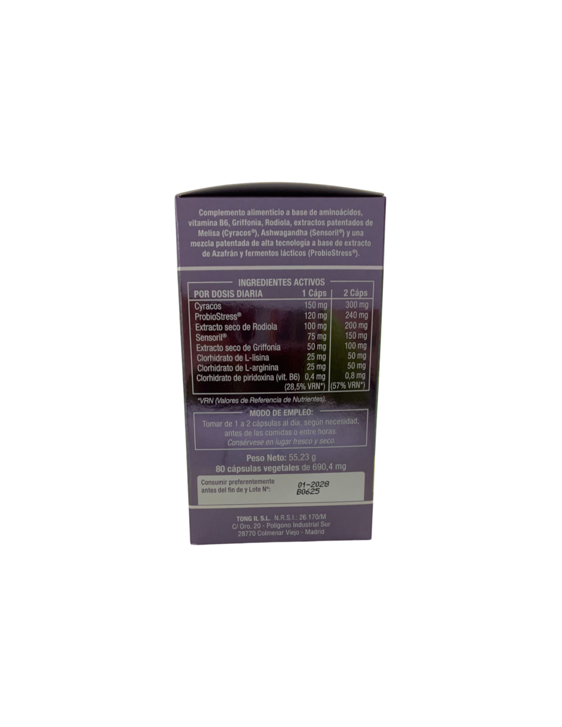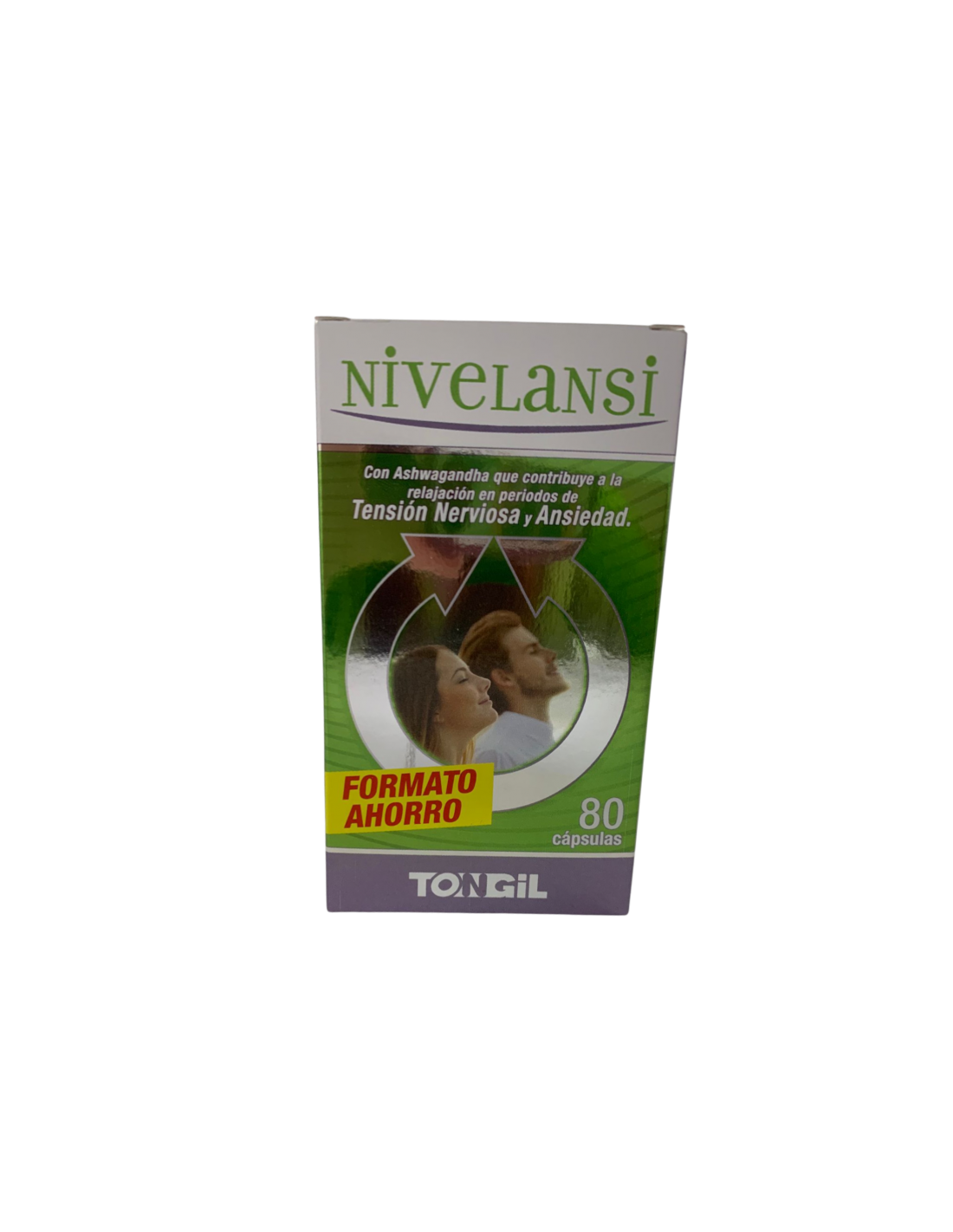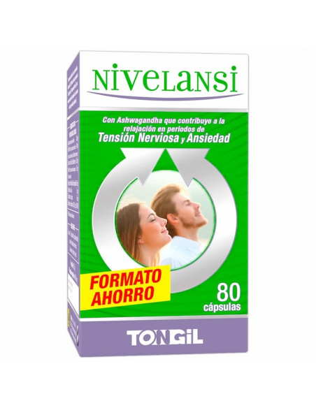 Nivelansi de tongil es un complemento alimenticio a base de aminoacidos, vitaminas, estractos patentados de plantas aspciados a una mezcla patentada de alta tecnologia a base de extracto de Azafrán y probioticos (ProbioStress), que contribuye a la relajación en periodos de tensión nerviosa y ansiedad.